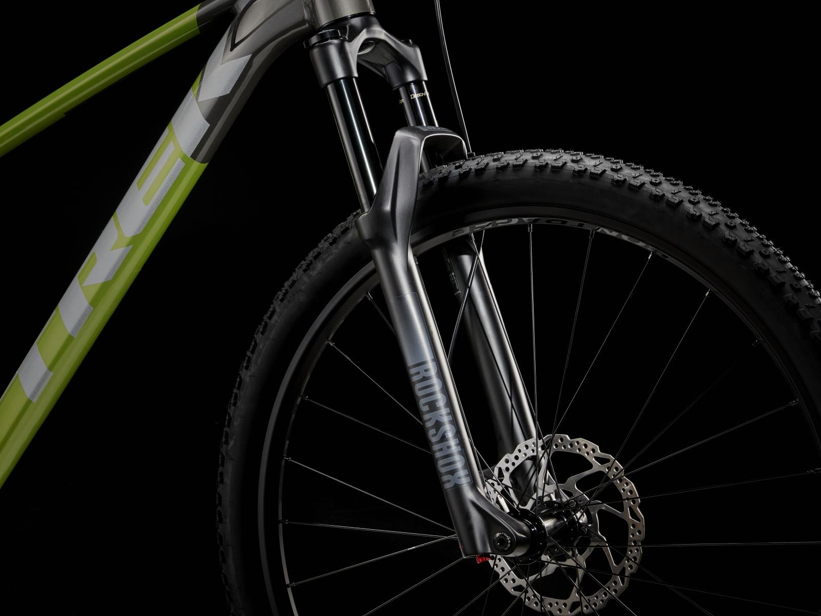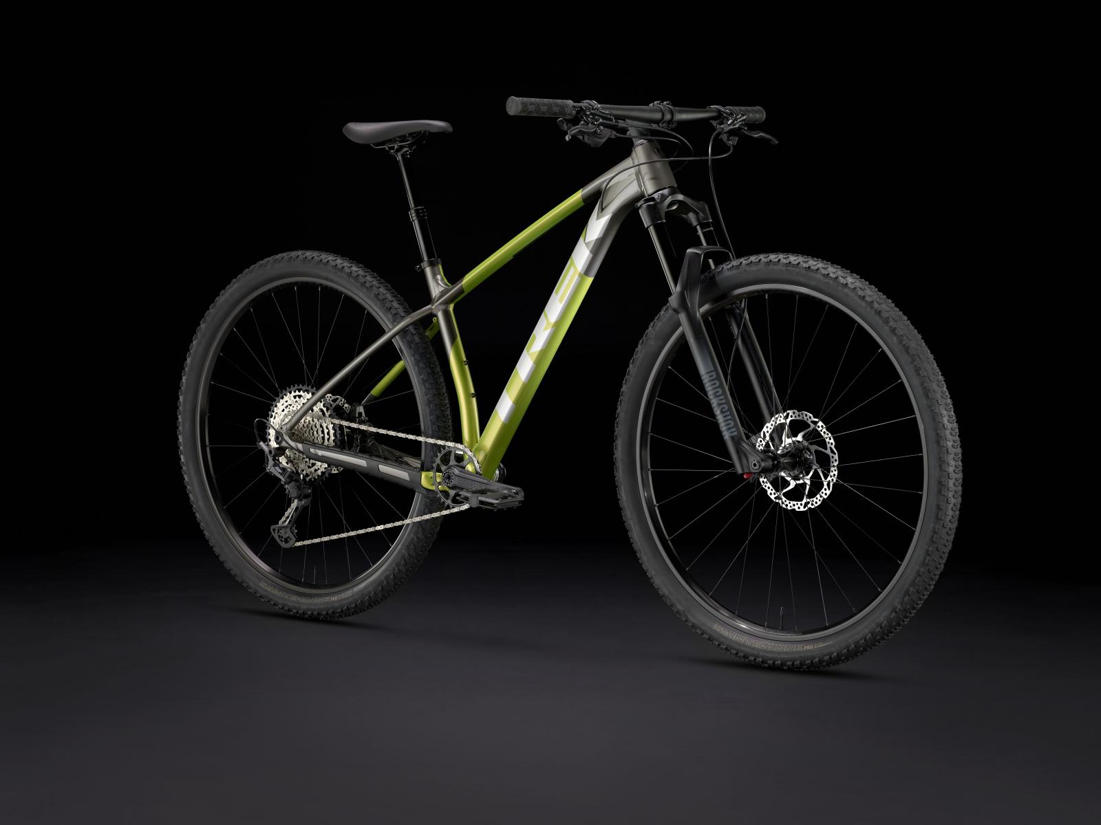 Einen leichten Hardtail-Rahmen aus Alpha Platinum Aluminium mit moderner XC-Geometrie samt 148 mm Boost-Einbaubreite für mehr Steifigkeit und Stabilität unter Last sowie eine trailglättende RockShox Recon Gold RL Gabel mit 120 mm Federweg, DebonAir-Feder, Motion Control Dämpfer und Lockout. Dazu bekommst du einen sauber schaltenden 12fach-Antrieb mit Shimano XT/SLX Komponenten, Bontrager Kovee Tubeless-Ready-Laufräder, eine Bontrager Line Variosattelstütze mit interner Zugführung und hydraulische Scheibenbremsen.