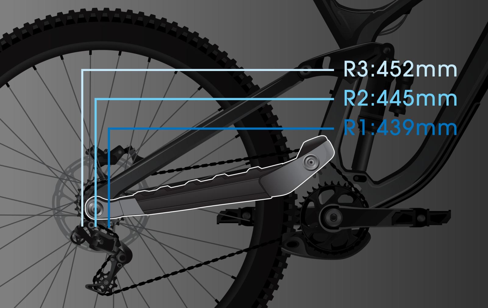 - Das Fahrwerkslayout mit hohem Dreh- und Umlenkpunkt verbessert die Traktion, unterstützt höhere Geschwindigkeiten und reduziert den Pedalrückschlag für mehr Stabilität.