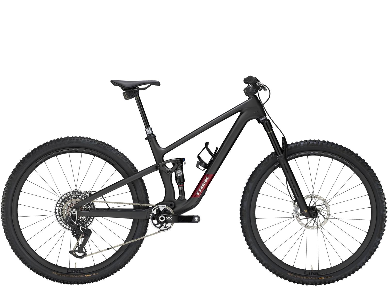 Einen Rahmen aus OCLV Mountain Carbon mit vierfach verstellbarem Mino Link an der unteren Dämpferaufnahme zur Feinanpassung der Rahmengeometrie und des Hebelverhältnisses des Fahrwerks. Eine RockShox Pike Ultimate Gabel mit 130 mm Federweg, DebonAir Luftfeder und Charger 3.1 RC2 Dämpfung sowie einen RockShox Deluxe Ultimate RCT Hinterbaudämpfer mit 120 mm Federweg. Abgerundet wird die Ausstattung von einer ultraleichten drahtlosen SRAM XX AXS Transmission, hydraulischen SRAM Level Ultimate 4-Kolben-Scheibenbremsen, einer RockShox Reverb AXS Variosattelstütze und Bontrager Line Pro 30 Tubeless-Ready-Carbonlaufrädern.