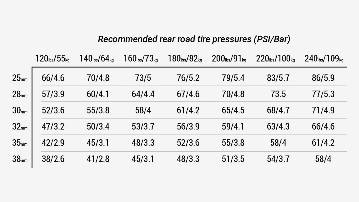 Bestimme das Fahrergewicht und definiere die Reifenbreite, um den empfohlenen Reifendruck zu ermitteln. Manchmal kann es von Vorteil sein, den Luftdruck im Vorderreifen etwas zu reduzieren. Wenn sich die Reifen zu weich oder zu hart anfühlen, kannst du den Luftdr