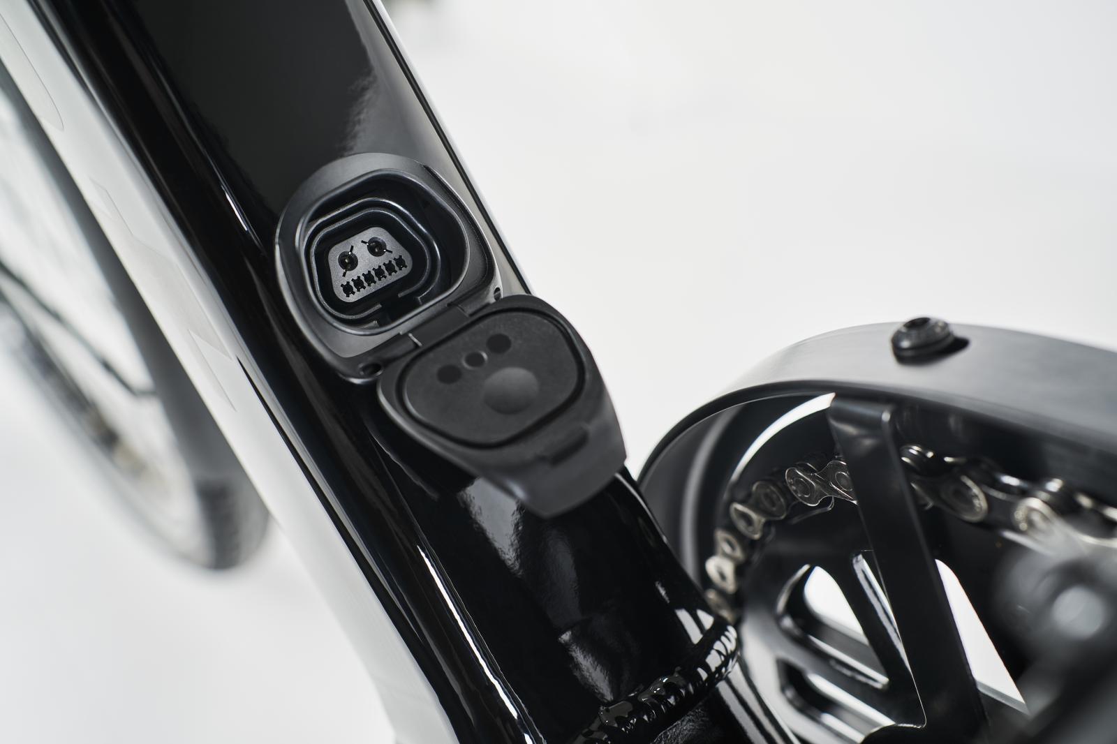 - Der sehr leichte Aluminiumrahmen versteckt, dass er mit Strom angetrieben wird. Für eine klare Optik und weniger Dreck laufen auch alle Kabel schon am Vorbau integriert.