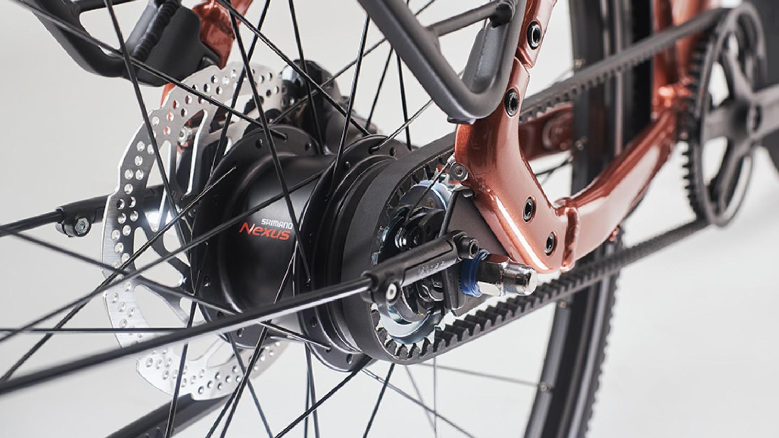 - Clever Frame-Technologie macht es einfach, trotz Riemenantrieb das Hinterrad ein- und auszubauen, sei es für reguläre Inspektionen oder bei einem platten Reifen unterwegs.