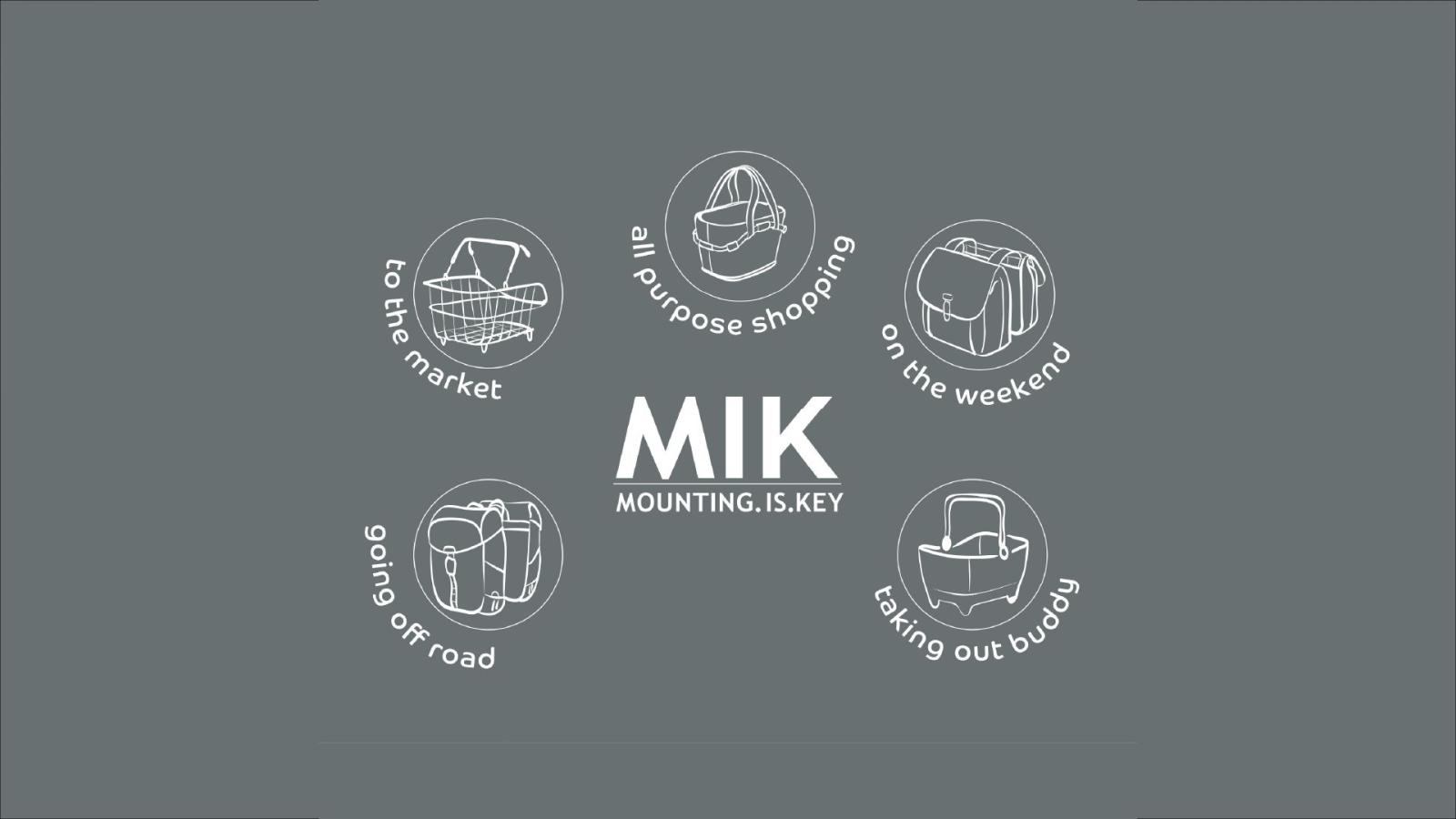 Der Gepäckträger ist kompatibel mit dem MIK-System von Basil. Damit kannst du Taschen und Körbe besonders stabil, aber einfach bedienbar auf der Tragfläche befestigen.