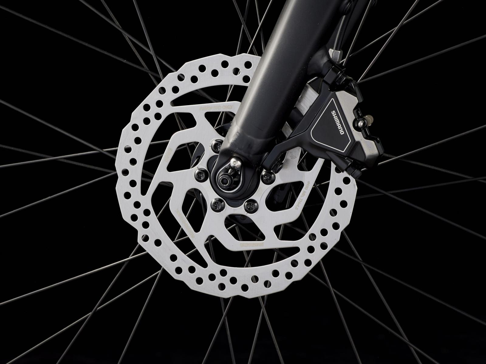 Einen leichten Aluminiumrahmen mit Stagger-Design zum einfachen Auf- und Absteigen, Treks proprietäres Antriebsunterstützungssystem von Hyena mit Nabenmotor mit 250 W Leistung und 40 Nm Drehmoment zur Antriebsunterstützung bis 25 km/h und einen 250 Wh starken Akku für bis zu 55 km Reichweite pro Ladung. Dazu gibt es steife 650B-Laufräder mit breiten 50C-Reifen zur Verbesserung von Geländegängigkeit und Komfort in abwechslungsreichem Terrain, eine zuverlässige 8-Gang-Schaltung von Shimano, hydraulische Scheibenbremsen, eine integrierte, akkugespeiste Beleuchtung und einen Seitenständer.