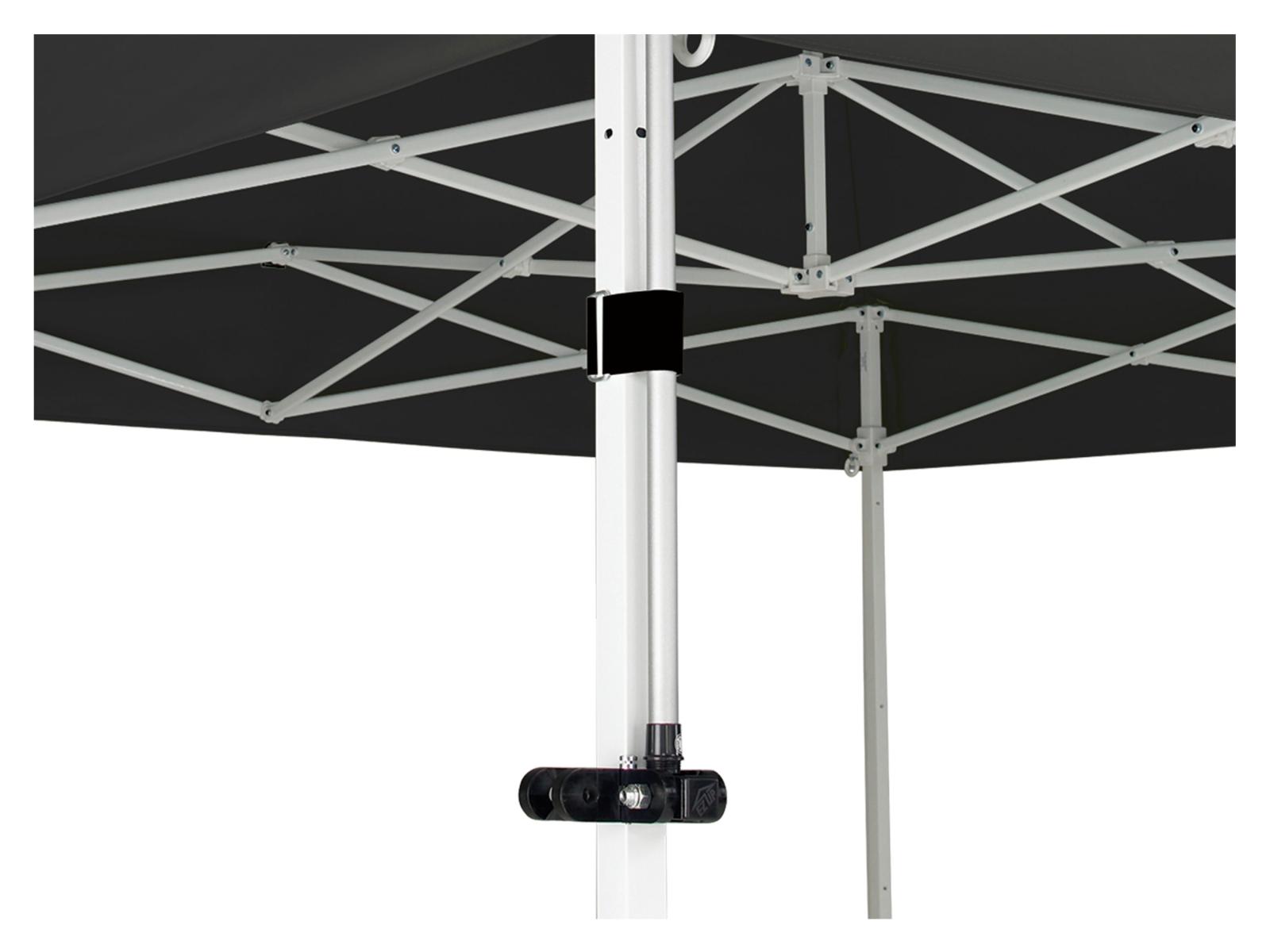 Eclipse™ ist stylish und leicht transportierbar und punktet mit einem modernen Design, herausragender Langlebigkeit und einer dauerhaften Verstärkung. - Mit der Pavillon-Befestigungshalterung kann die Sichtbarkeit durch eine höhere als normale Montage verbessert werden - Strapazierfähige, speziell geformte Halterungen werden sicher an Pavillion und Mast befestigt. - Die Halterung verfügt über spezielle Nuten, die in die Beine eingreifen. Die Halterung wird um das Bein gelegt und sicher und einfach mit Sicherungsstiften befestigt.