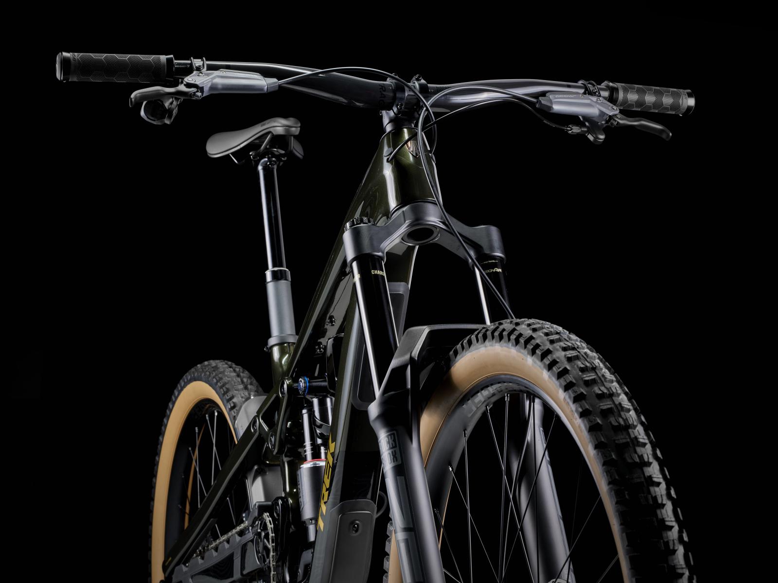 Einen Rahmen aus OCLV Mountain Carbon mit High-Pivot-Fahrwerkskonstruktion und Umlenkrolle sowie Rahmenstaufach. 170 mm vorderen und hinteren Federweg dank RockShox ZEB Select+ Federgabel mit DebonAir Federung und Charger 3.1 RC2 Dämpfung sowie RockShox Vivid Select+ Dämpfer. Außerdem SRAMs drahtlose GX AXS Transmission mit breiter Übersetzung für knackige Anstiege, eine Bontrager Line Variosattelstütze und eine Mullet-Laufradkonfiguration mit Bontrager Line Elite 30 Tubeless Ready 29er Vorderrad und 27,5 Zoll Hinterrad aus Carbon, inklusive Rapid Drive Nabe.