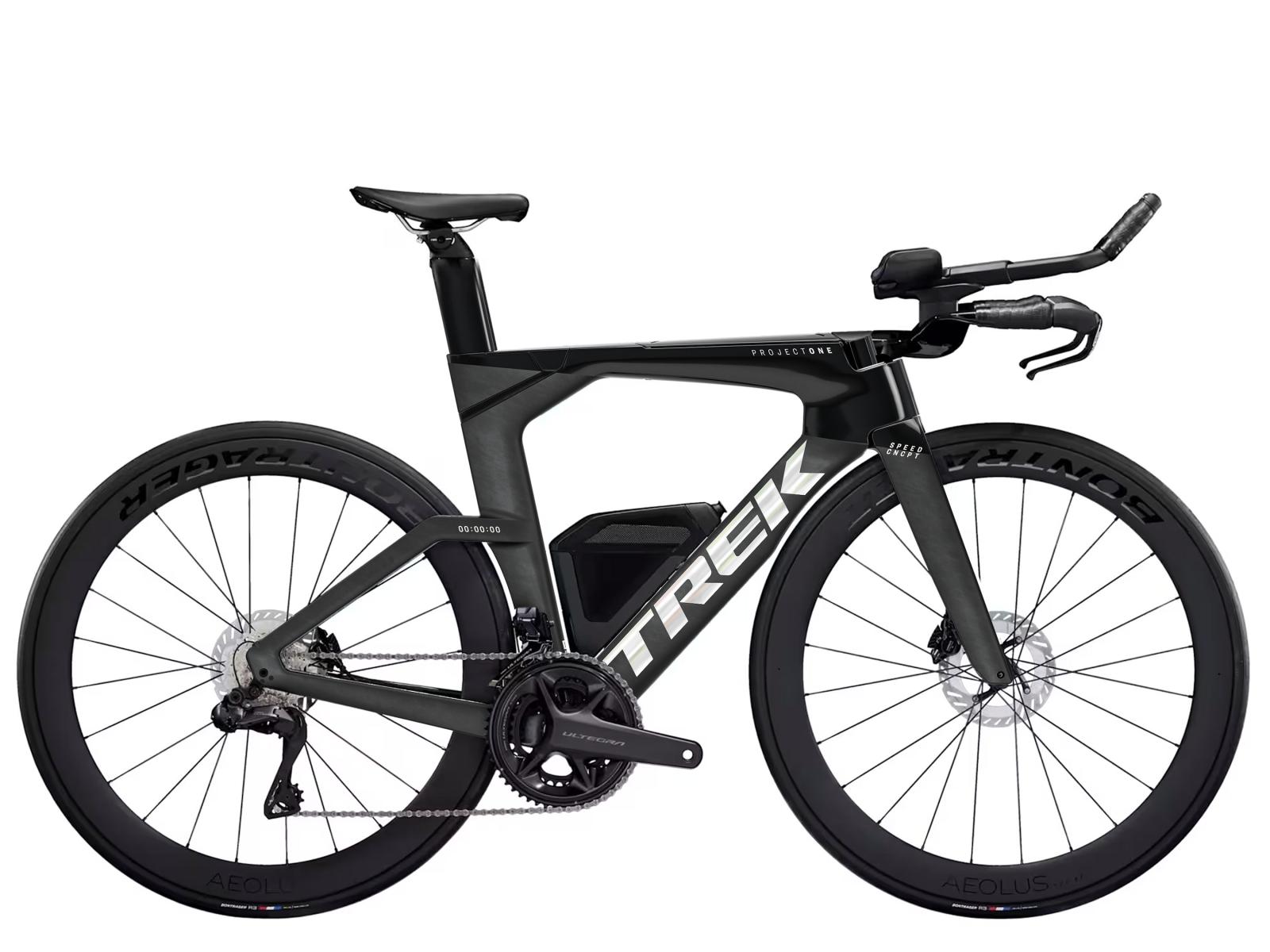 Einen ultraleichten Rahmen aus 800 Series OCLV Carbon, windschnittige Rohre mit Kammtail Virtual Foil Profil (KVF), eine Speed Concept Carbongabel mit aerodynamischem Profil, vibrationsdämpfendes IsoSpeed und integrierte Aufbewahrungslösungen für Verpflegung, Flüssigkeit und Pannenkit. Dazu gibt es einen drahtlosen, elektronischen Shimano Ultegra Di2 12fach-Antrieb, eine vollständig integrierte Lenker/Vorbau-Einheit, einen triathlonspezifischen Bontrager Hilo Comp Sattel für eine aggressive Aero-Sitzposition, Scheibenbremsen für zuverlässige Bremsleistung und Bontrager Aeolus Pro 51 Laufräder aus OCLV Carbon.