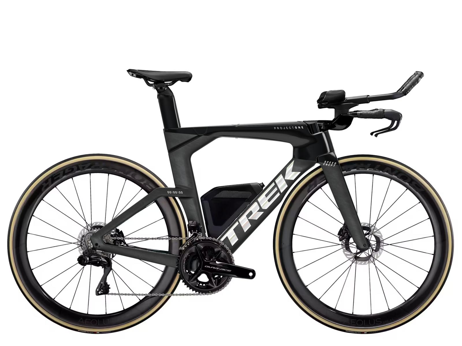 Einen ultraleichten Rahmen aus 800 Series OCLV Carbon samt windschnittigen KVF-Rohrprofilen (Kammtail Virtual Foil), eine aerodynamische Speed Concept-Carbongabel, straßenglättendes IsoSpeed und eine integrierte Aufbewahrungslösung für Verpflegung, Flüssigkeit und Pannenkit. Außerdem bekommst du einen elektronischen Shimano Dura-Ace 12fach-Drahtlosantrieb, eine vollständig integrierte Lenker/Vorbau-Einheit, einen triathlonspezifischen Bontrager Hilo Pro Carbonsattel für eine aggressive Aero-Sitzposition, Scheibenbremsen für zuverlässige Bremsleistung und aerodynamische Bontrager Aeolus RSL 51 Laufräder aus OCLV Carbon.