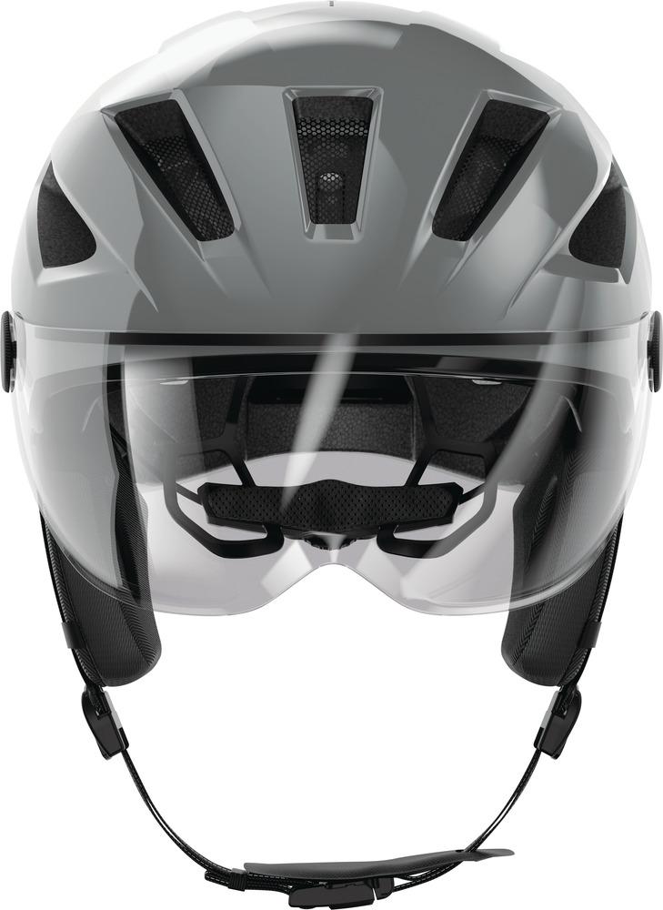 SICHER DURCH DEN GROßSTADTDSCHUNGEL In den Schluchten der Stadt gehört ein Helm immer dazu. Der Pedelec 2.0 ACE ist dabei die erste Wahl für alle Urban Biker. Im Großstadtverkehr ist ein Helm für Sie als Radfahrer ein unverzichtbarer Begleiter. Denn Unfälle passieren schnell und wenn es zu einem Sturz kommt, schützt ein Fahrradhelm vor größeren Schäden. ABUS bietet mit dem Pedelec 2.0 ACE einen Fahrradhelm, der die hohen Sicherheitsanforderungen der Großstadt erfüllt. Mit seinem tiefen Schläfenbereich bietet er dem Träger besonderen Schutz. Darüber hinaus zeichnet den Pedelec 2.0 ACE eine integrierte Regenhaube aus, die sich bei den ersten Regentropfen schnell über den Helm ziehen lässt. Das besonders helle, aufladbare Licht und das austauschbare Visier bieten zusätzlichen, passiven Schutz.