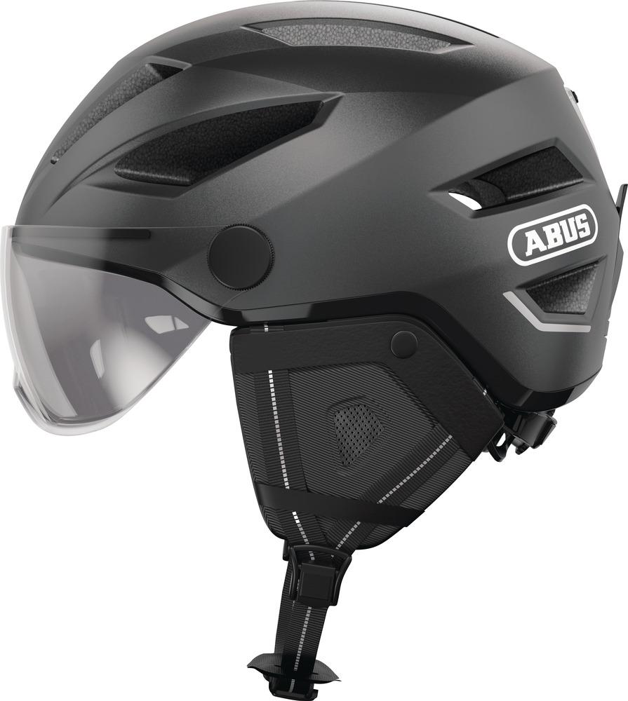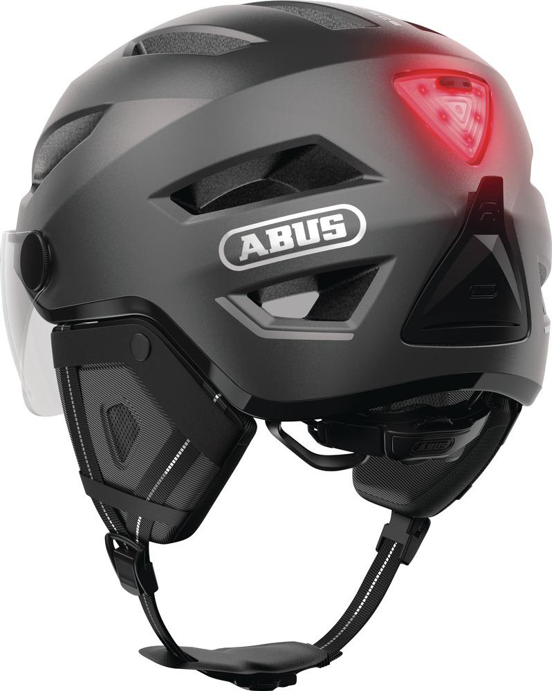 SICHER DURCH DEN GROßSTADTDSCHUNGEL In den Schluchten der Stadt gehört ein Helm immer dazu. Der Pedelec 2.0 ACE ist dabei die erste Wahl für alle Urban Biker. Im Großstadtverkehr ist ein Helm für Sie als Radfahrer ein unverzichtbarer Begleiter. Denn Unfälle passieren schnell und wenn es zu einem Sturz kommt, schützt ein Fahrradhelm vor größeren Schäden. ABUS bietet mit dem Pedelec 2.0 ACE einen Fahrradhelm, der die hohen Sicherheitsanforderungen der Großstadt erfüllt. Mit seinem tiefen Schläfenbereich bietet er dem Träger besonderen Schutz. Darüber hinaus zeichnet den Pedelec 2.0 ACE eine integrierte Regenhaube aus, die sich bei den ersten Regentropfen schnell über den Helm ziehen lässt. Das besonders helle, aufladbare Licht und das austauschbare Visier bieten zusätzlichen, passiven Schutz.