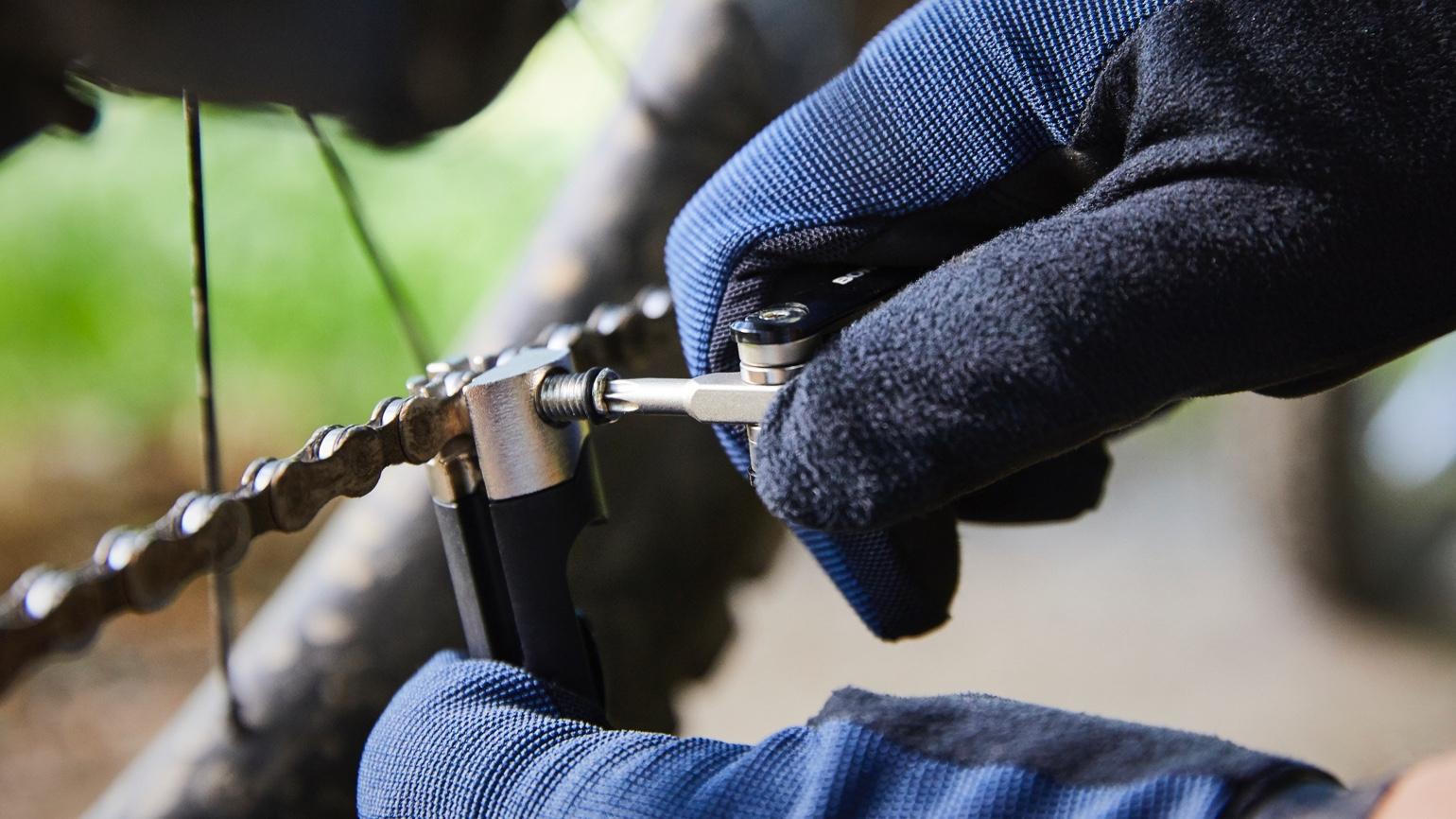 Ein gerissene Kette kann einem die Ausfahrt vermiesen – es sei denn, man hat das intergrierte BITS MTB-Werkzeug dabei. Das kommt nämlich mit einem Kettennieter, damit du auf solche Zwischenfälle bestens vorbereitet bist.