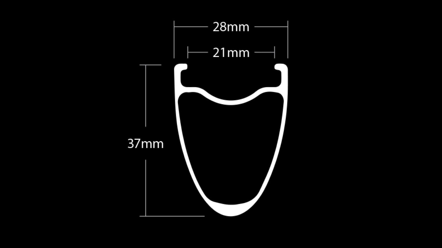 - Die RSL-optimierte Felgenhöhe von 37 mm ermöglicht ein Optimum an Geschwindigkeit, Stabilität und Gewicht