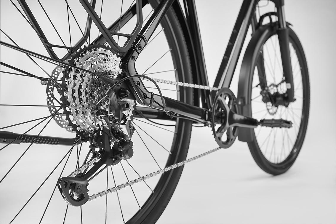 - Viele Ösenpaare im Rahmen und an der Gabel machen es möglich, Zubehör wie Flaschenhalter und Schlösser sicher zu befestigen.