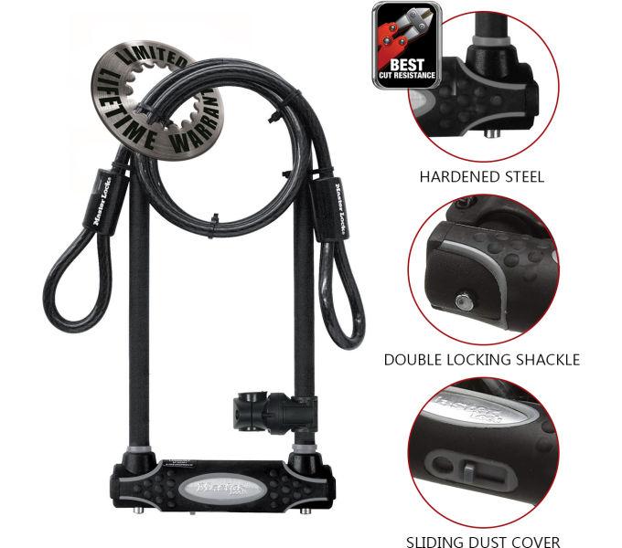 Master Lock Bügelschloss 8285LW Schwarz 13 mm x 280 mm x 110 mm / 10 mm x 1200 mm Schlüssel