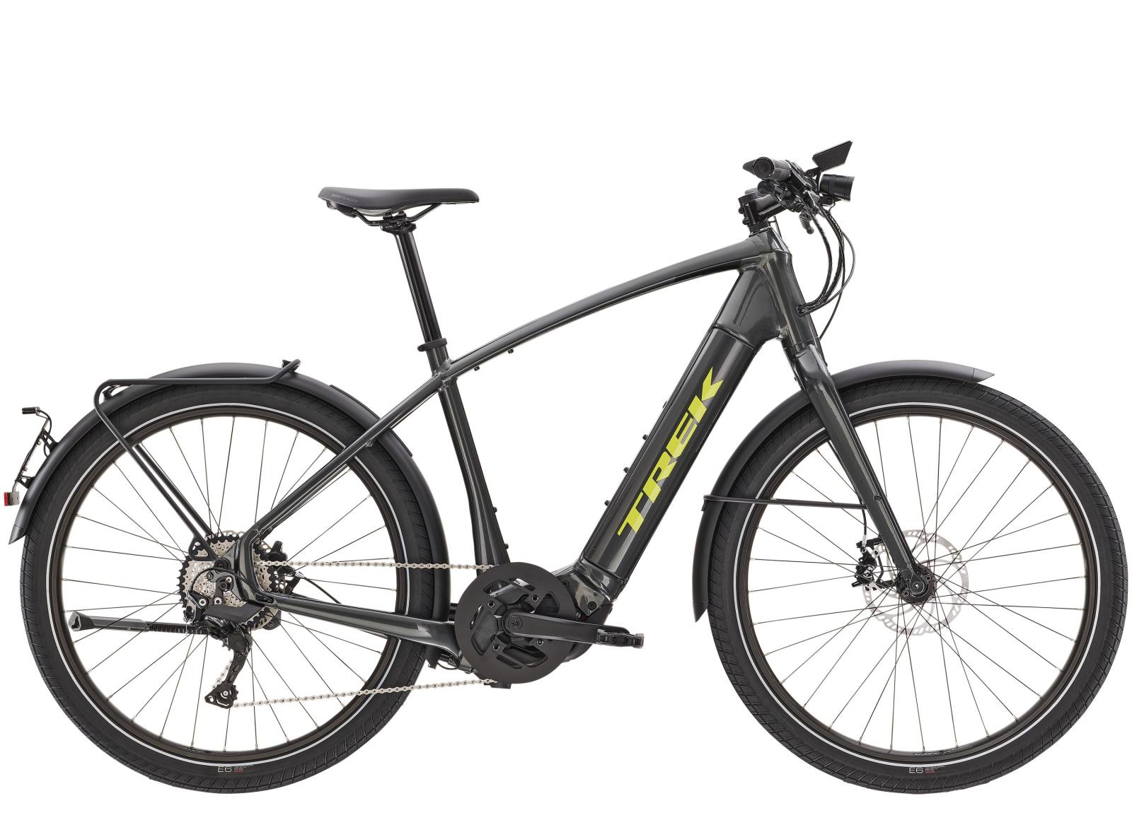 Einen schlanken, hydrogeformten Aluminiumrahmen mit vollständig integriertem, 625 Wh starken Bosch PowerTube-Akku, einen extrem kraftvollen Bosch Performance Speed-Motor mit 250 W Leistung und 85 Nm Drehmoment zur Tretunterstützung bis 45 km/h und einen Kiox-Controller. Außerdem kommt es mit einem 10fach-Antrieb von Shimano, einem integrierten Beleuchtungssystem, Schutzblechen, einem Heckgepäckträger und steifen 27,5-Zoll-Laufrädern mit Steckachsen.