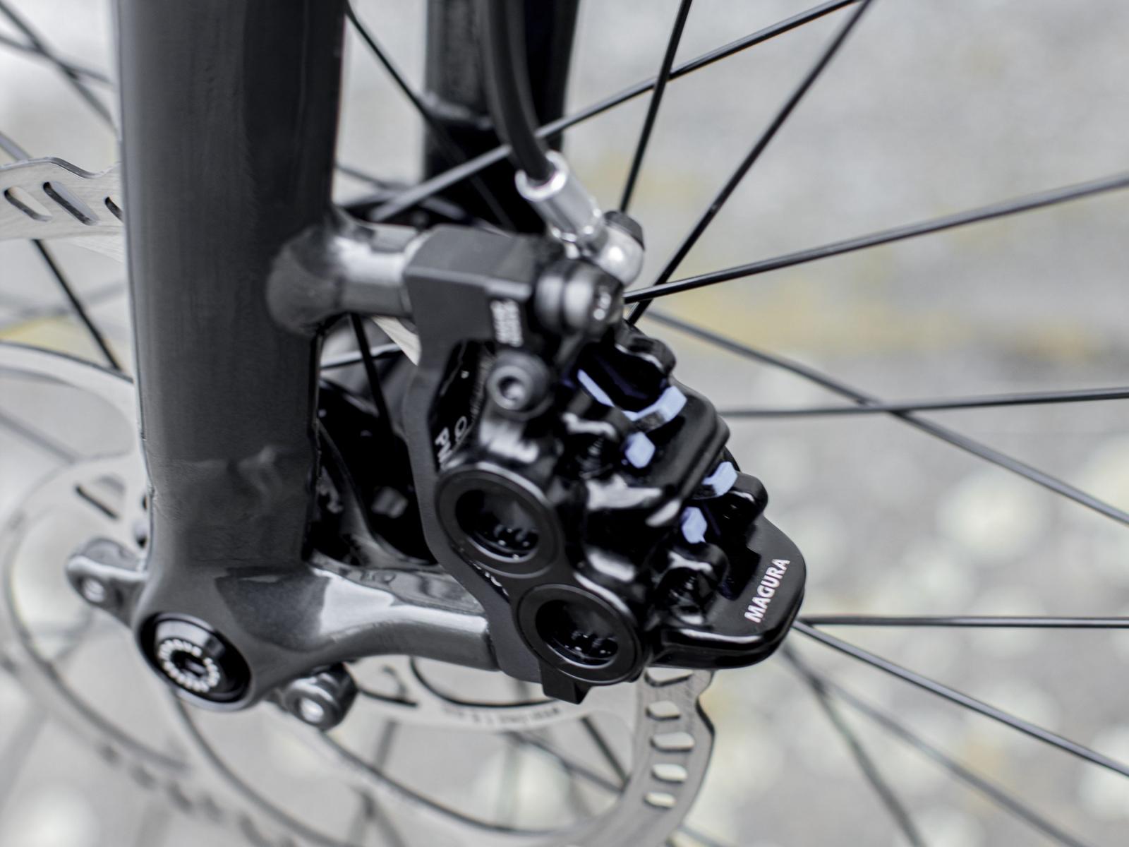 Vorderradbremse: Magura MT5NE, hydraulische 4-Kolben-Scheibenbremse mit Bremslichtschalter // Magura MT4NE, hydraulische 4-Kolben-Scheibenbremse mit Bremslichtschalter