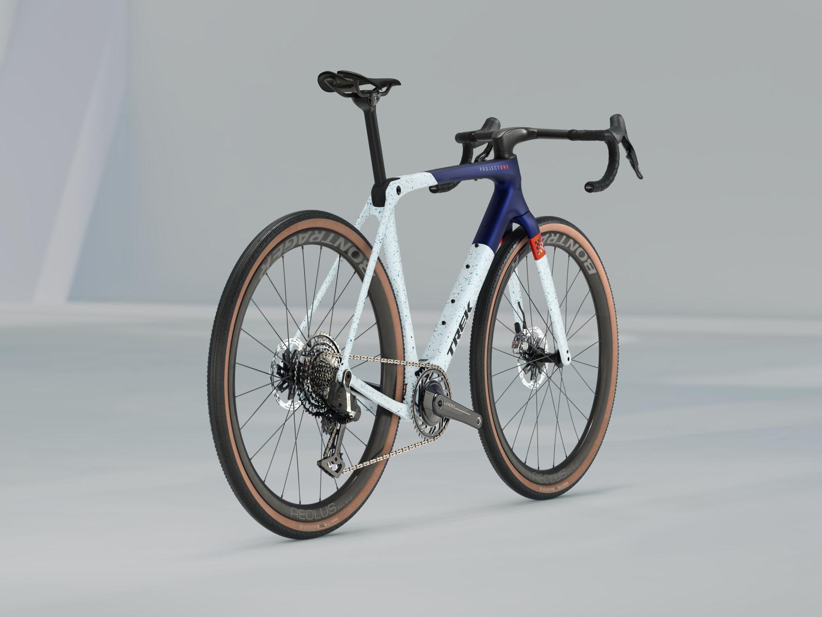 Einen leichten und aerodynamischen Rahmen aus 800 Series OCLV Carbon mit IsoSpeed-Komforttechnologie und vielen Befestigungspunkten für die wichtigsten Utensilien am Renntag. Bontrager Aeolus RSL 37V Carbonlaufräder und eine Trek Aero RSL Lenker-Vorbau-Einheit aus Carbon für ein leichtgewichtiges und agiles Fahrverhalten. Außerdem SRAMs leichtesten und ergonomischsten RED XPLR AXS Antrieb mit kabelloser Schaltung für ruppige Straßen.