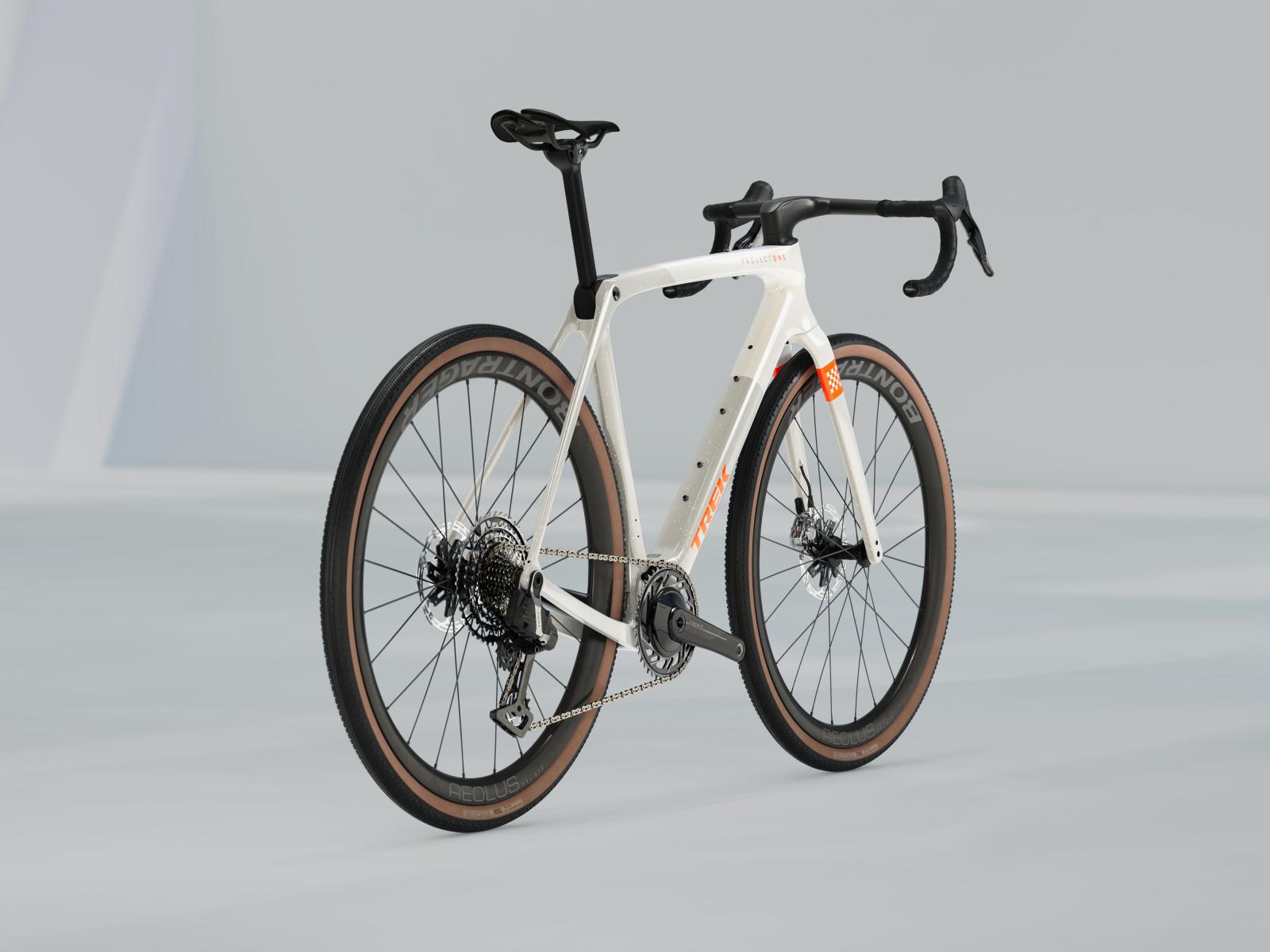 Einen leichten und aerodynamischen Rahmen aus 800 Series OCLV Carbon mit IsoSpeed-Komforttechnologie und vielen Befestigungspunkten für die wichtigsten Utensilien am Renntag. Bontrager Aeolus RSL 37V Carbonlaufräder und eine Trek Aero RSL Lenker-Vorbau-Einheit aus Carbon für ein leichtgewichtiges und agiles Fahrverhalten. Außerdem SRAMs leichtesten und ergonomischsten RED XPLR AXS Antrieb mit kabelloser Schaltung für ruppige Straßen.