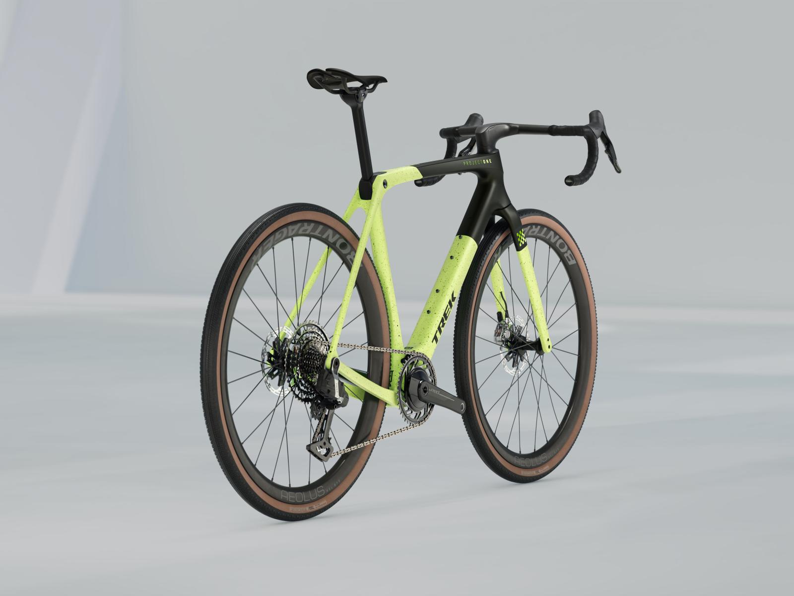 Einen leichten und aerodynamischen Rahmen aus 800 Series OCLV Carbon mit IsoSpeed-Komforttechnologie und vielen Befestigungspunkten für die wichtigsten Utensilien am Renntag. Bontrager Aeolus RSL 37V Carbonlaufräder und eine Trek Aero RSL Lenker-Vorbau-Einheit aus Carbon für ein leichtgewichtiges und agiles Fahrverhalten. Außerdem SRAMs leichtesten und ergonomischsten RED XPLR AXS Antrieb mit kabelloser Schaltung für ruppige Straßen.