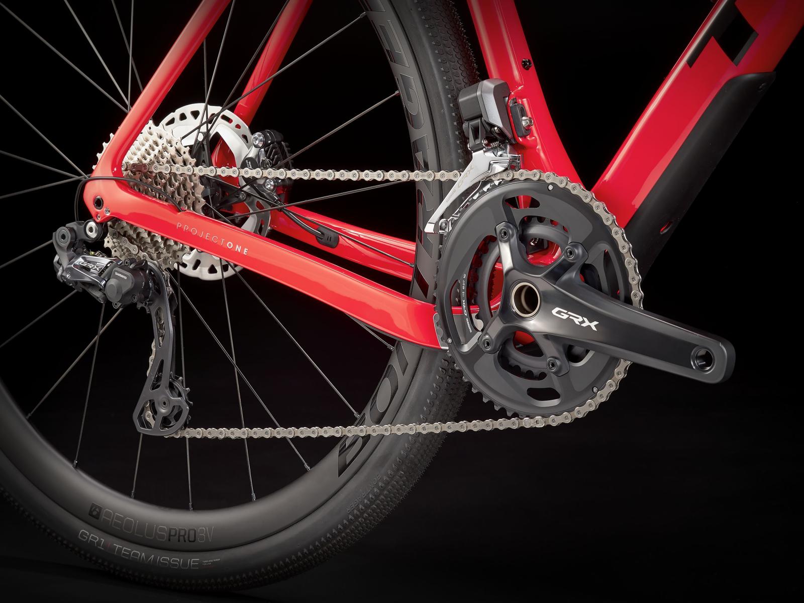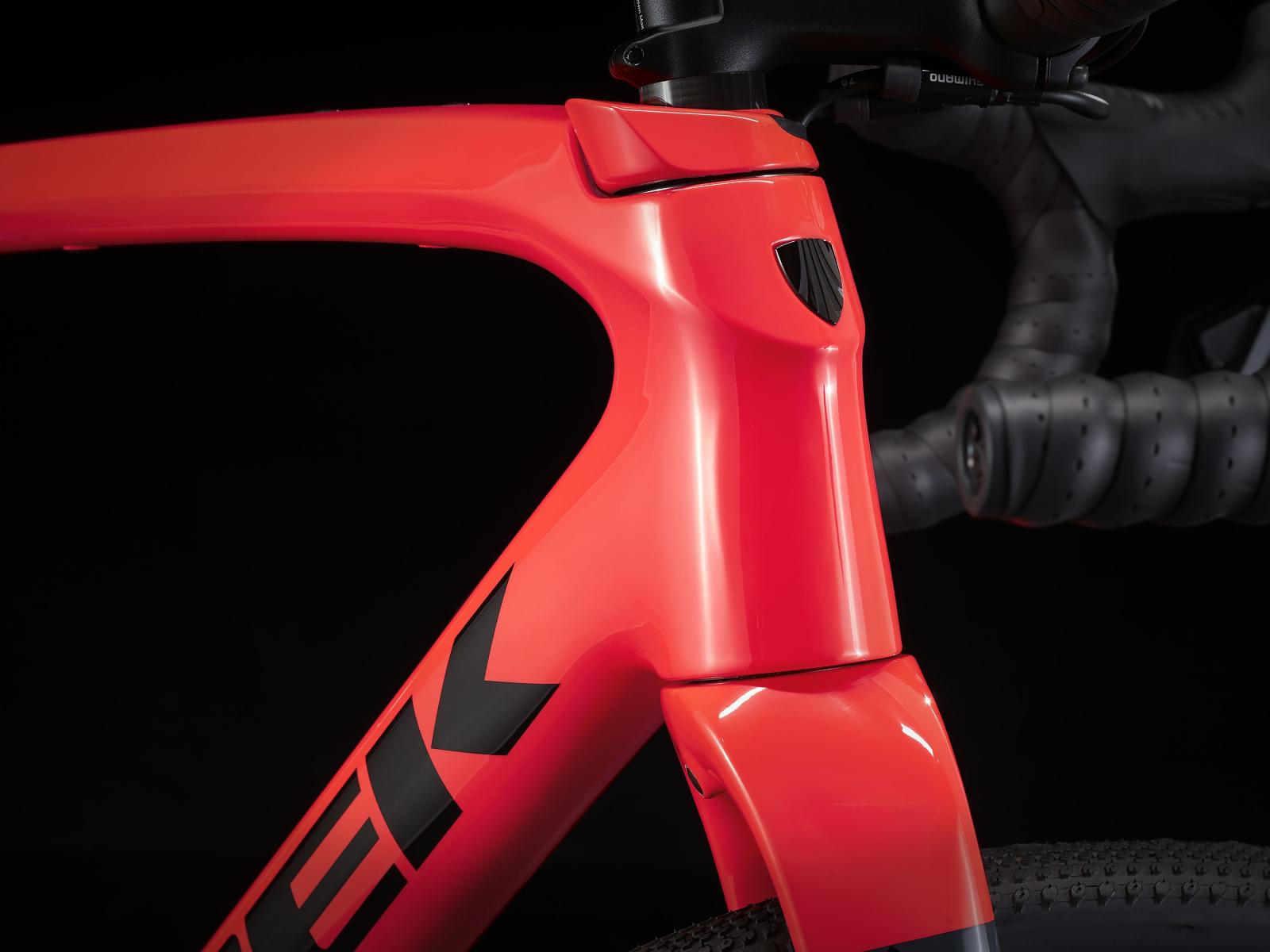 Einen Rahmen aus 700 Series OCLV Carbon mit IsoSpeed und Carbon Armor und mit einer progressiven Geometrie, die bei hohen Geschwindigkeiten stabil und auf knackigen Anstiegen effizient ist. Dazu gibts ein internes Staufach, verborgene Züge, die deinen Taschen nicht in die Quere kommen, und integrierte Befestigungselemente für eine Rahmentasche und für Schutzbleche. Außerdem bekommst du eine Carbongabel, einen robusten Shimano GRX 2x11-Antrieb, Bontragers Aeolus Pro 3V-Laufräder aus OCLV Carbon und breite Gravelreifen im Format 700 x 40C für noch mehr Stabilität und Traktion. Der Rahmen bietet Platz für Reifen bis zu einer Breite