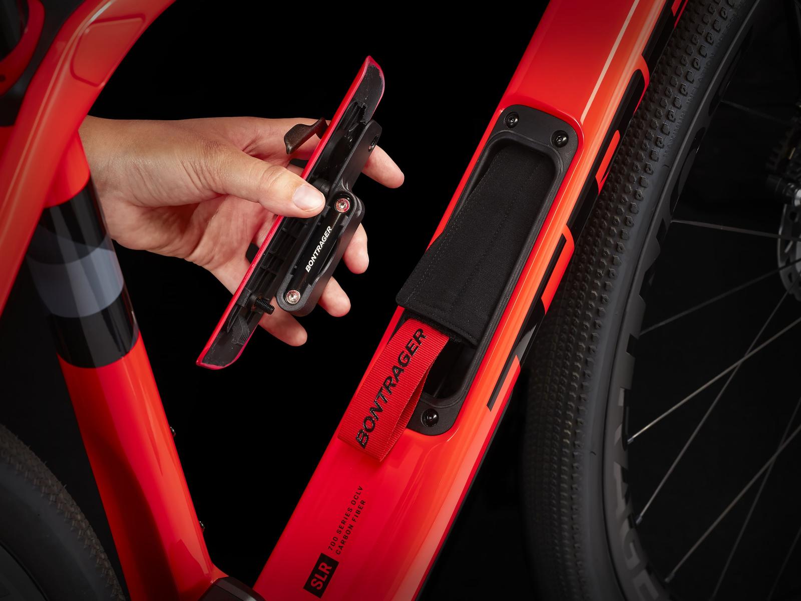 - Ein schlankes, im Rahmen integriertes Staufach ermöglicht die Unterbringung von Werkzeug und Ausrüstung.