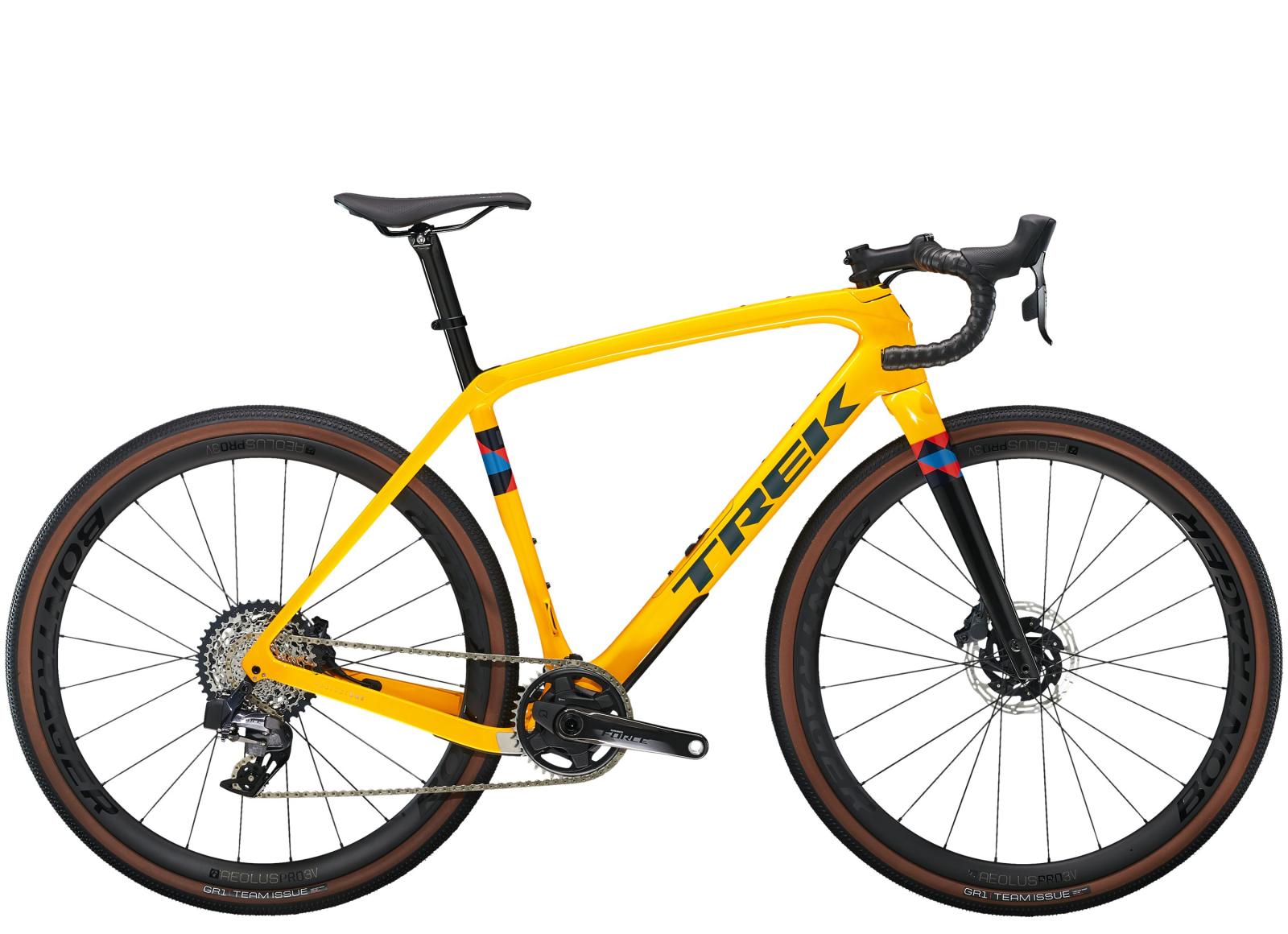 Einen Rahmen aus 700 Series OCLV Carbon mit IsoSpeed, Carbon Armor und einer progressiven Geometrie, die bei hohen Geschwindigkeiten stabil und auf knackigen Anstiegen effizient ist. Dazu gibts ein internes Staufach, verborgene Züge, die deinen Taschen nicht in die Quere kommen, und integrierte Befestigungselemente für eine Rahmentasche und für Schutzbleche. Außerdem bekommst du eine Carbongabel, SRAMs drahtlosen elektronischen Force eTap AXS 2x12-Antrieb mit breitem Übersetzungsbereich, Bontragers Aeolus Pro 3V-Laufräder aus OCLV Carbon und breite Gravelreifen im Format 700 x 40C für noch mehr Stabilität und Traktion. Der Rahme