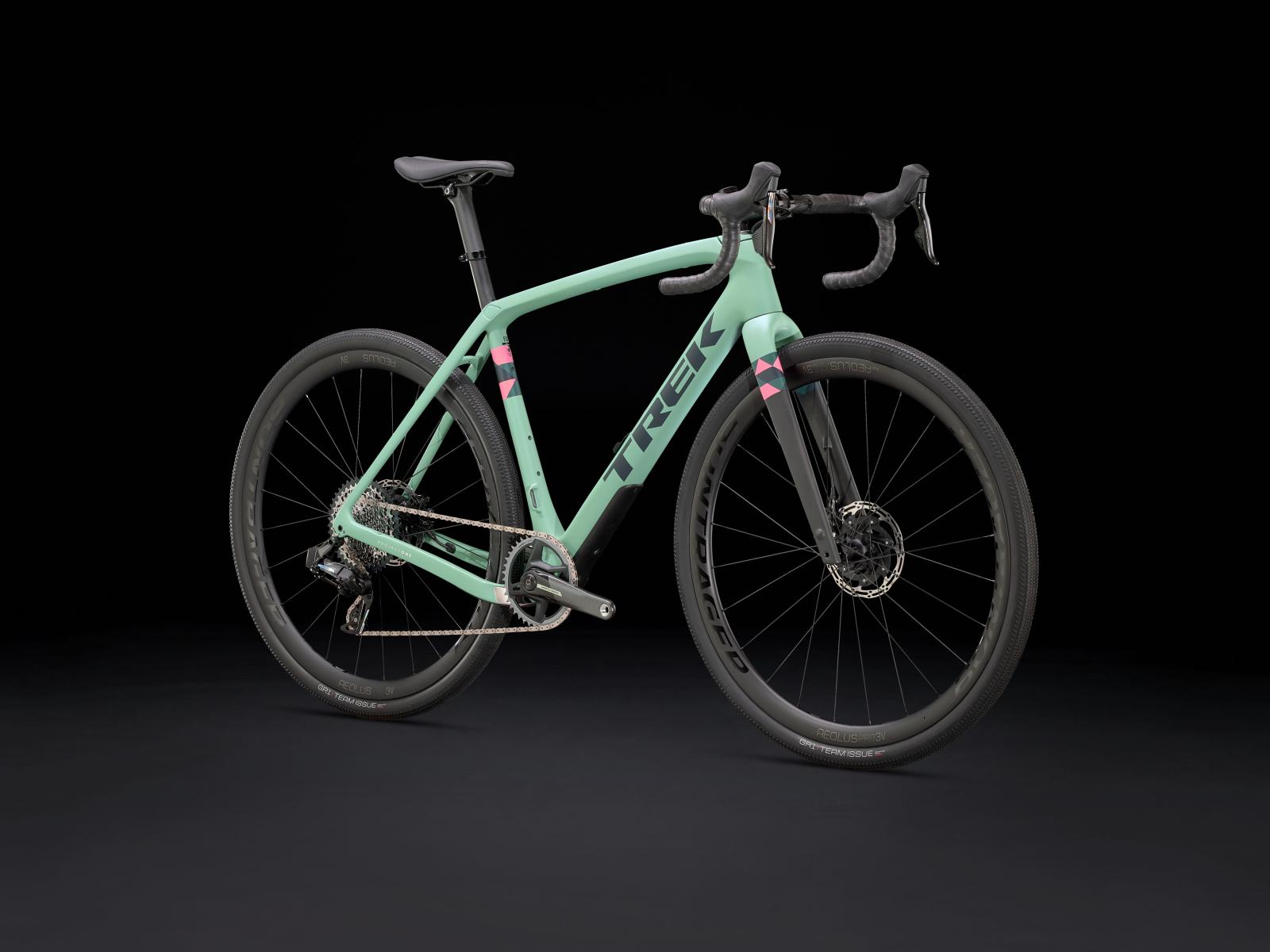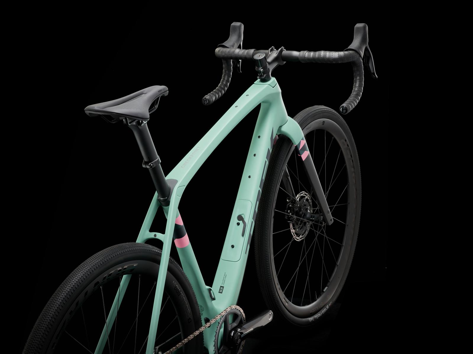 Einen Rahmen aus 700 Series OCLV Carbon mit vorderem IsoSpeed und Carbon Armor, eine progressive Geometrie, die bei hohen Geschwindigkeiten stabil und auf knackigen Anstiegen effizient ist, ein internes Staufach, verborgene Züge, die deinen Taschen nicht in die Quere kommen, und integrierte Aufnahmepunkte für eine Rahmentasche und Schutzbleche. Dazu bekommst du eine Carbongabel, SRAMs drahtlosen, elektronischen Force XPLR AXS D2 1x12-Antrieb mit breitem Übersetzungsbereich, Bontragers Aeolus Pro 3V-Laufräder aus OCLV Carbon und breite Gravelreifen im Format 700 x 40C für zusätzliche Stabilität und Traktion. Der Rahmen bietet Pla