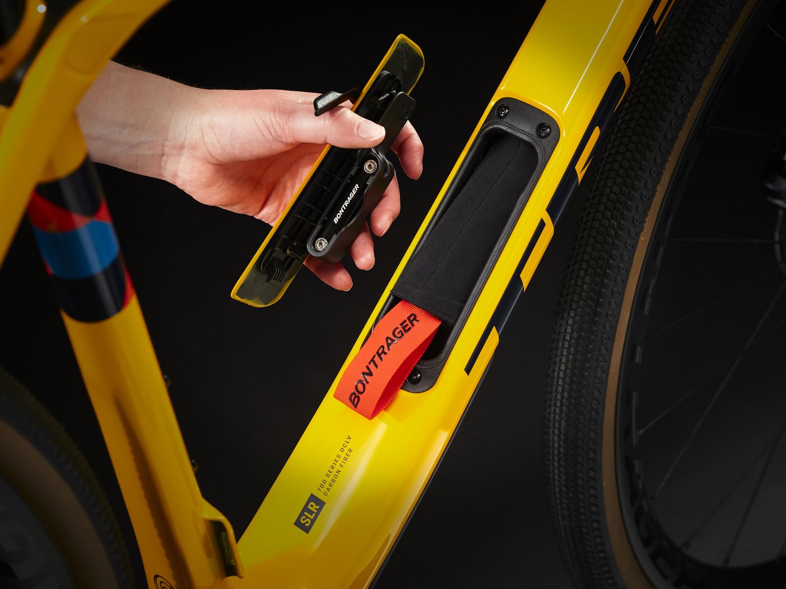 - Ein schlankes, im Rahmen integriertes Staufach ermöglicht die Unterbringung von Werkzeug und Ausrüstung.