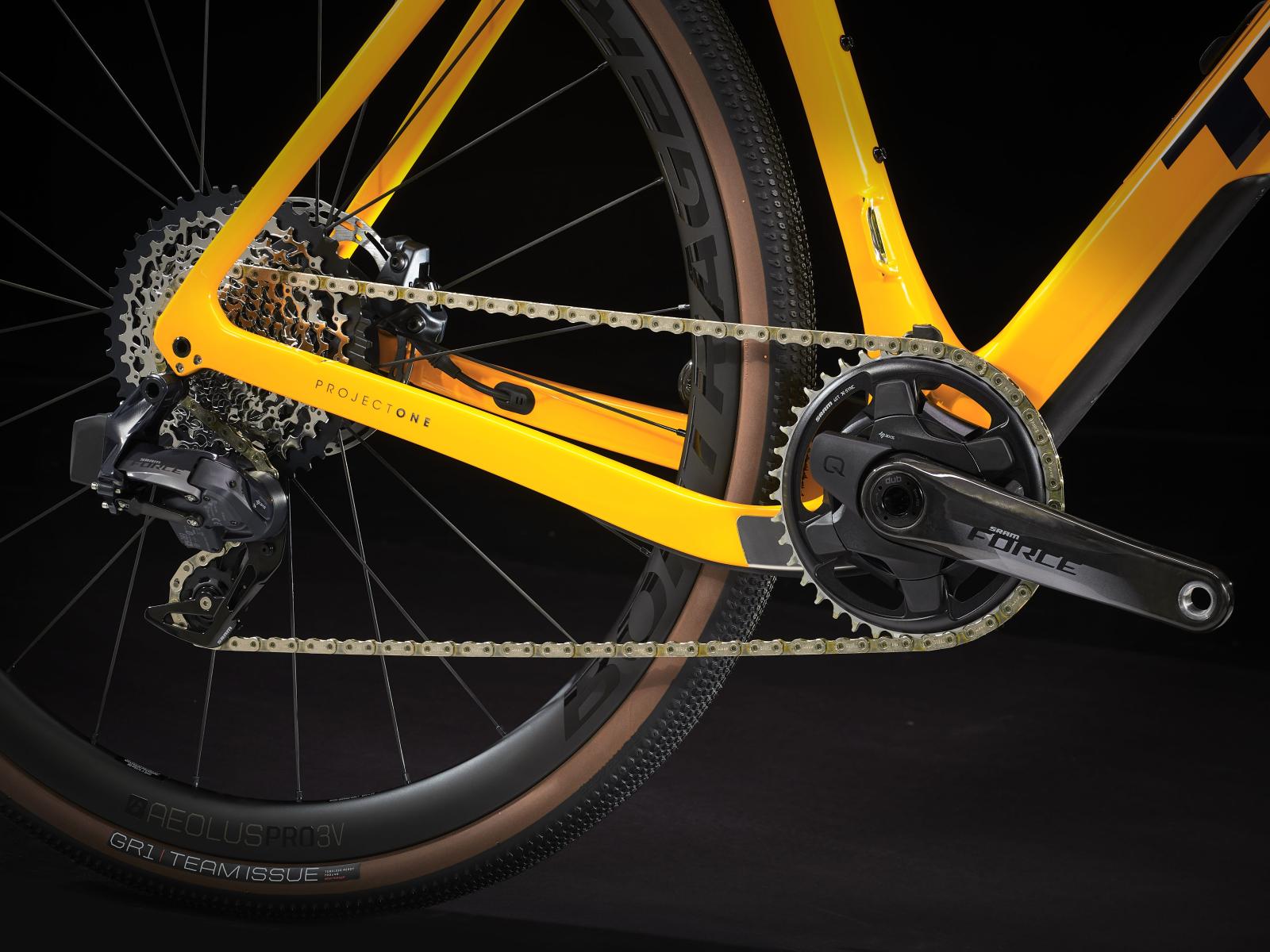 Einen Rahmen aus 700 Series OCLV Carbon mit IsoSpeed, Carbon Armor und einer progressiven Geometrie, die bei hohen Geschwindigkeiten stabil und auf knackigen Anstiegen effizient ist. Dazu gibts ein internes Staufach, verborgene Züge, die deinen Taschen nicht in die Quere kommen, und integrierte Befestigungselemente für eine Rahmentasche und für Schutzbleche. Außerdem bekommst du eine Carbongabel, SRAMs drahtlosen elektronischen Force eTap AXS 2x12-Antrieb mit breitem Übersetzungsbereich, Bontragers Aeolus Pro 3V-Laufräder aus OCLV Carbon und breite Gravelreifen im Format 700 x 40C für noch mehr Stabilität und Traktion. Der Rahme