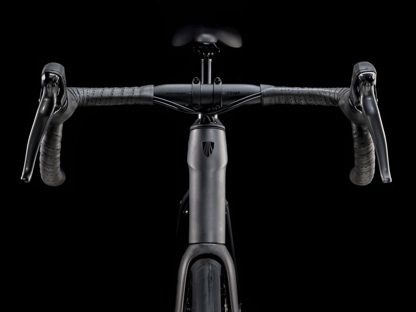 Lenker: Bontrager Comp, Aluminium, 31,8 mm Klemmdurchmesser, 80 mm Reach, 121 mm Drop, 42 cm Oberlenkerbreite, 46 cm Unterlenkerbreite // Bontrager Comp VR-C, Aluminium, 31,8 mm, 100 mm Reach, 1
