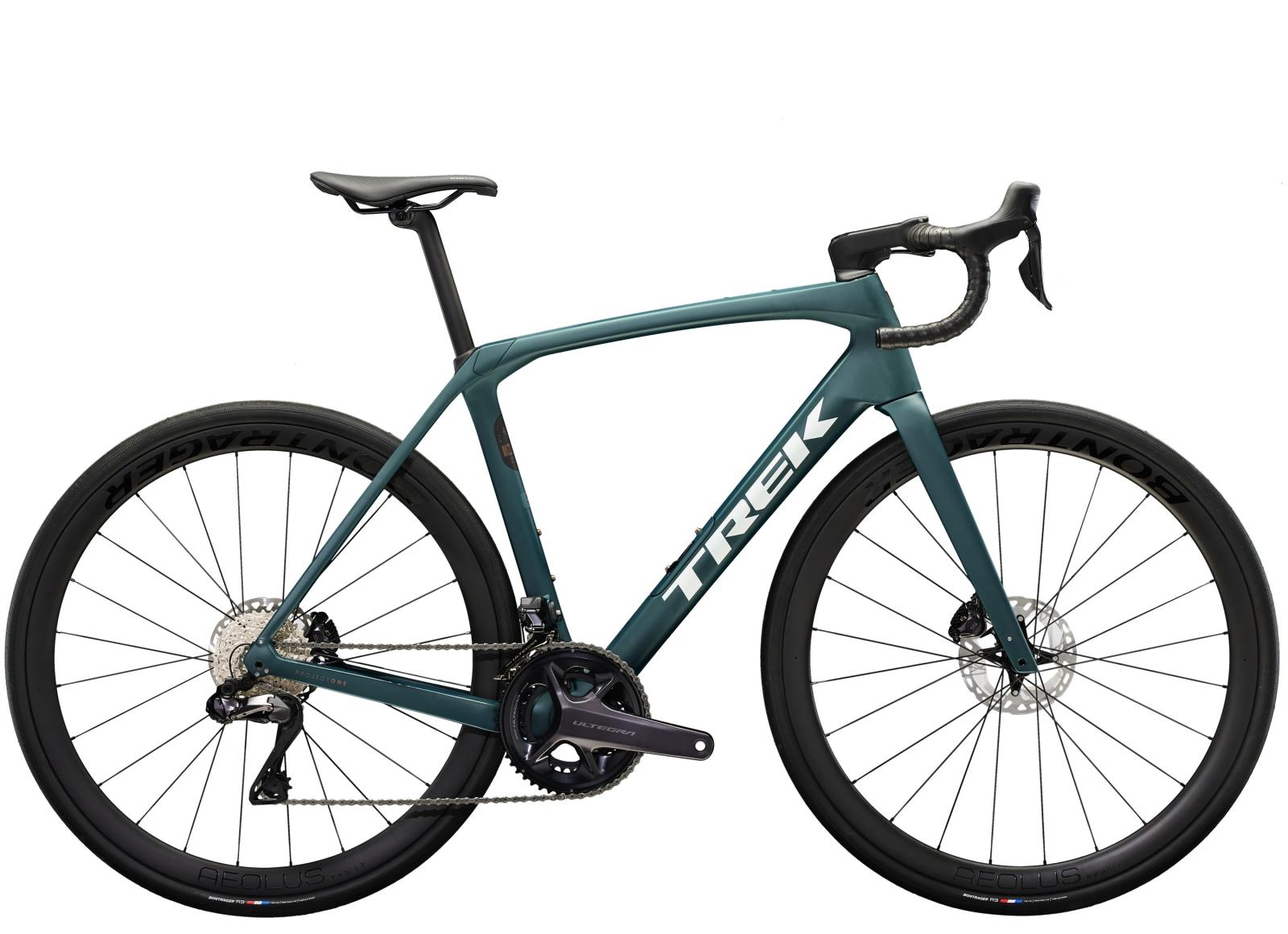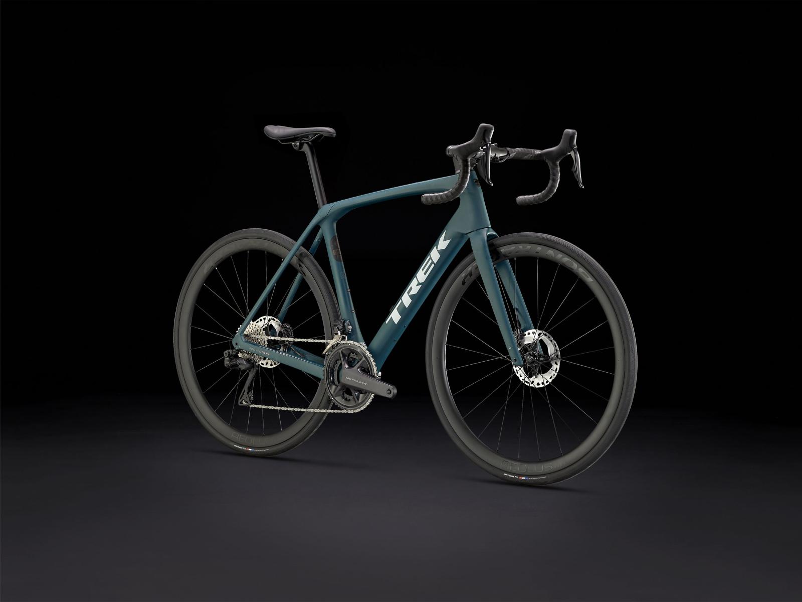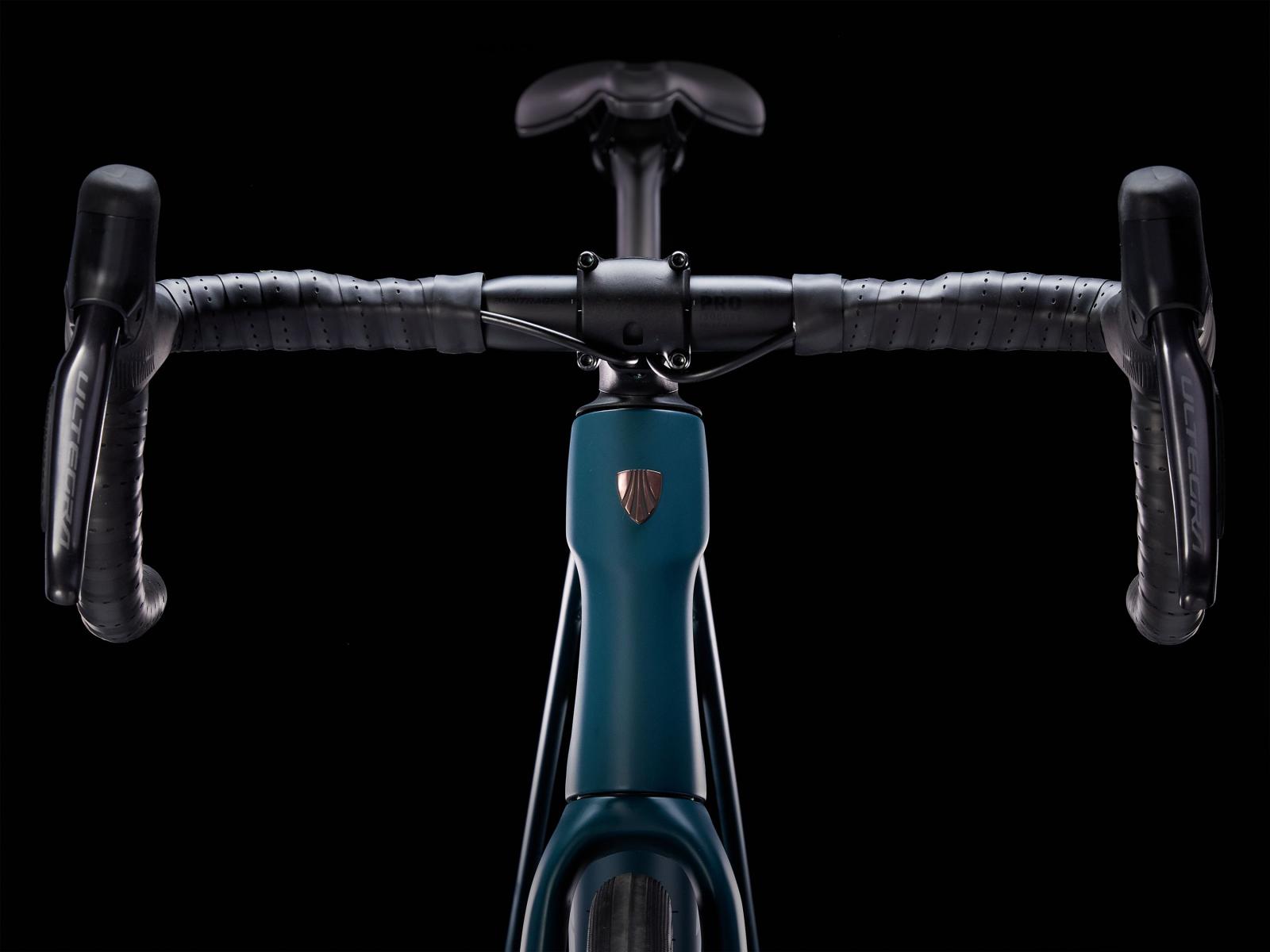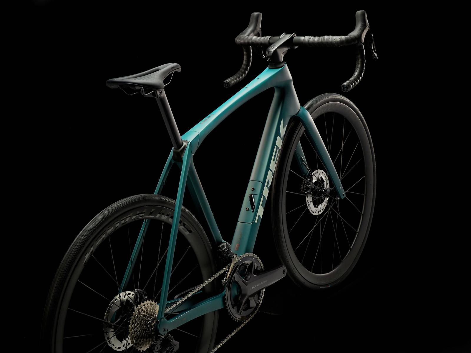 Einen Rahmen samt Gabel aus 800 Series OCLV Carbon mit hinterem IsoSpeed, integriertem internem Staufach und Befestigungsmöglichkeiten am Oberrohr. Ausgestattet ist es mit Shimanos drahtlosem, elektronischem Ultegra Di2 2x12-Antrieb, kraftvoll zupackenden Flat Mount-Scheibenbremsen, Aeolus Pro 37-Carbonlaufrädern und einem Bontrager Pro IsoCore-Lenker, der Straßenvibrationen im Vergleich zu herkömmlichen Carbonlenkern um 20 % verringert.