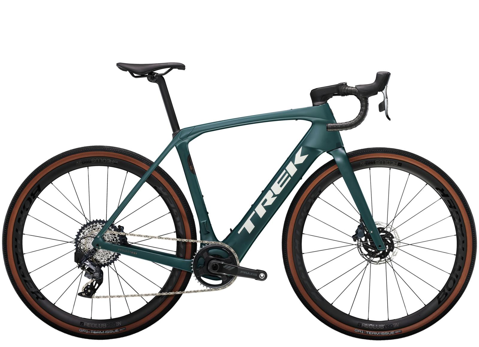 Einen Rahmen aus unserem besten und leichtesten 800 Series OCLV Carbon mit hinterem IsoSpeed. Einen TQ Harmonic-Pinring-Motor (360 Wh, 50 Nm) mit integriertem Akku, ein intelligentes, integriertes LED-Display und diskrete Bedienelemente in den Bremsgummis zum Umschalten der Unterstützungsstufen. Dazu bekommst du Aeolus Pro 3V-Laufräder aus OCLV Carbon, einen drahtlose, elektronischen SRAM Force eTap AXS-Antrieb, Carbonkurbeln, einen vibrationsdämpfenden Pro IsoCore-Lenker von Bontrager und einen RCS Pro-Vorbau, der deine Züge und Leitungen für einen schlanken Look vollständig integriert.