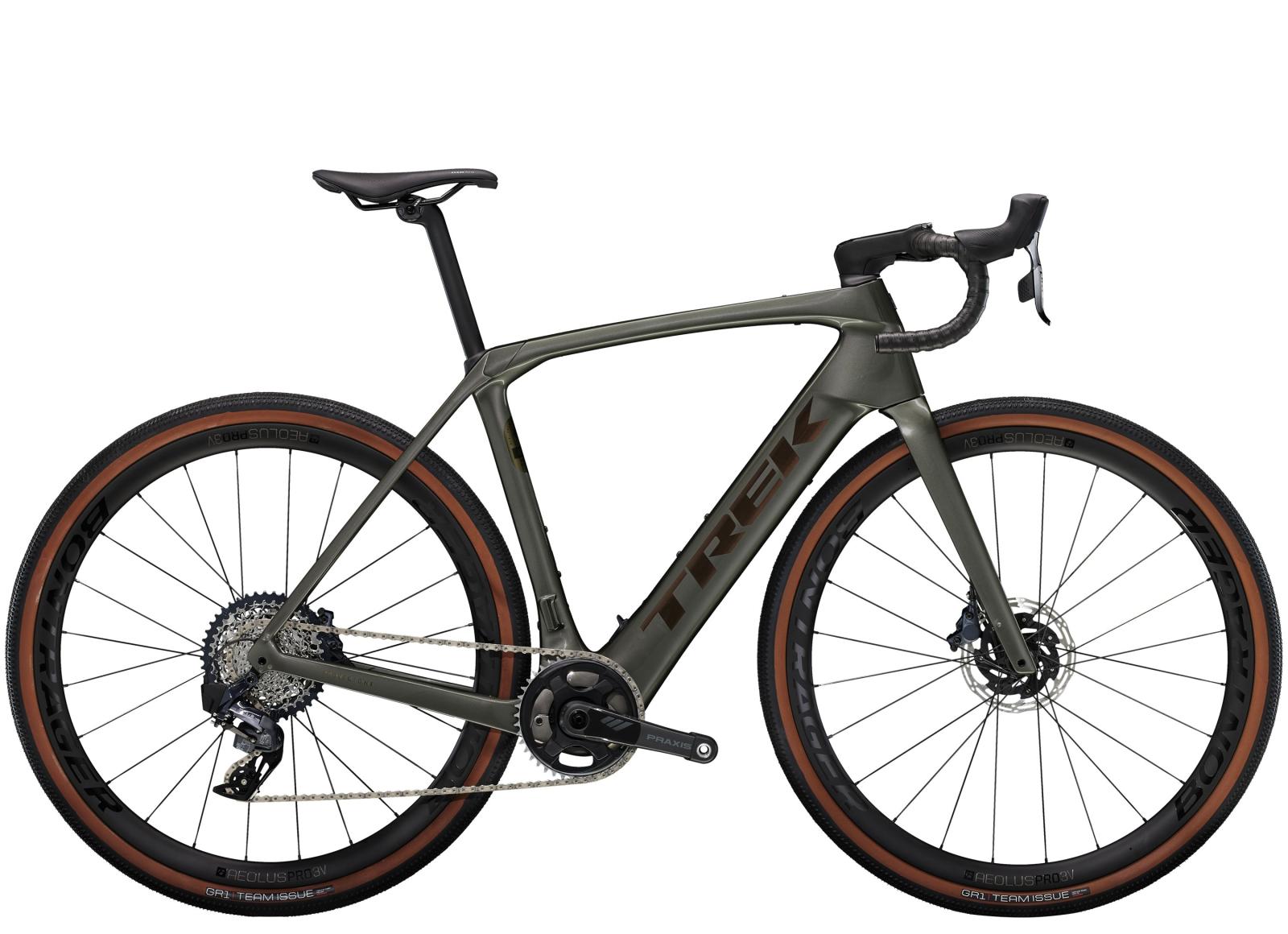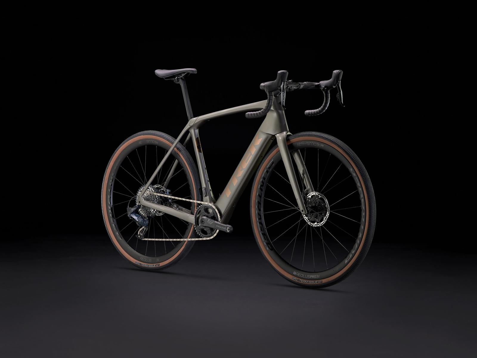Einen Rahmen aus unserem besten und leichtesten 800 Series OCLV Carbon mit hinterem IsoSpeed. Einen TQ Harmonic-Pinring-Motor (360 Wh, 50 Nm) mit integriertem Akku, ein intelligentes, integriertes LED-Display und diskrete Bedienelemente in den Bremsgummis zum Umschalten der Unterstützungsstufen. Dazu bekommst du Aeolus Pro 3V-Laufräder aus OCLV Carbon, einen drahtlose, elektronischen SRAM Force eTap AXS-Antrieb, Carbonkurbeln, einen vibrationsdämpfenden Pro IsoCore-Lenker von Bontrager und einen RCS Pro-Vorbau, der deine Züge und Leitungen für einen schlanken Look vollständig integriert.