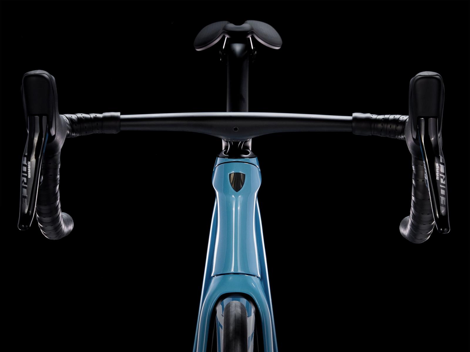 Einen ultraleichten und aerodynamischen Rahmen aus 800 Series OCLV Carbon, der weniger als 700 Gramm auf die Waage bringt, einen SRAM Force eTap AXS 2x12-Antrieb mit drahtloser elektronischer Schaltung, leichte Bontrager Aeolus Pro 37 Tubeless Ready-Laufräder aus OCLV Carbon, eine integrierte Aeolus RSL Lenker/Vorbau-Einheit aus OCLV Carbon, einen SRAM Force AXS Leistungsmesser und kraftvoll zupackende hydraulische Scheibenbremsen.