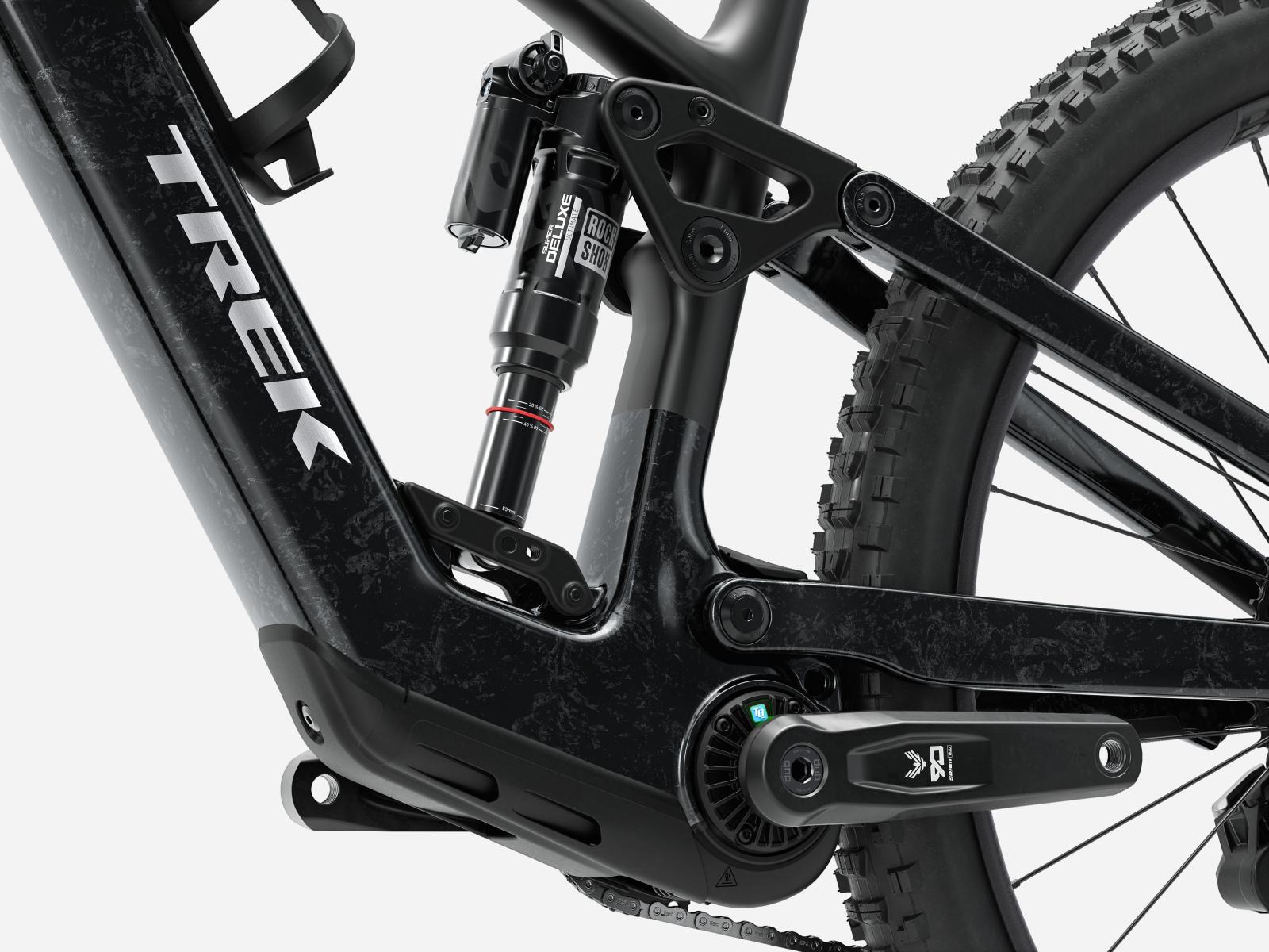 Rahmen: OCLV Mountain Carbon, herausnehmbarer Akku, verstellbarer Steuersatzwinkel, verstellbares Hebelverhältnis, geführte interne Zug- und Leitungsverlegung, austauschbare Aluminiumumlenkhebel, austauschbare untere Dämpferaufnahme, Unterrohrschutz, Shuttle-Protektor, ABP, UDH, Boost148, anpassbarer