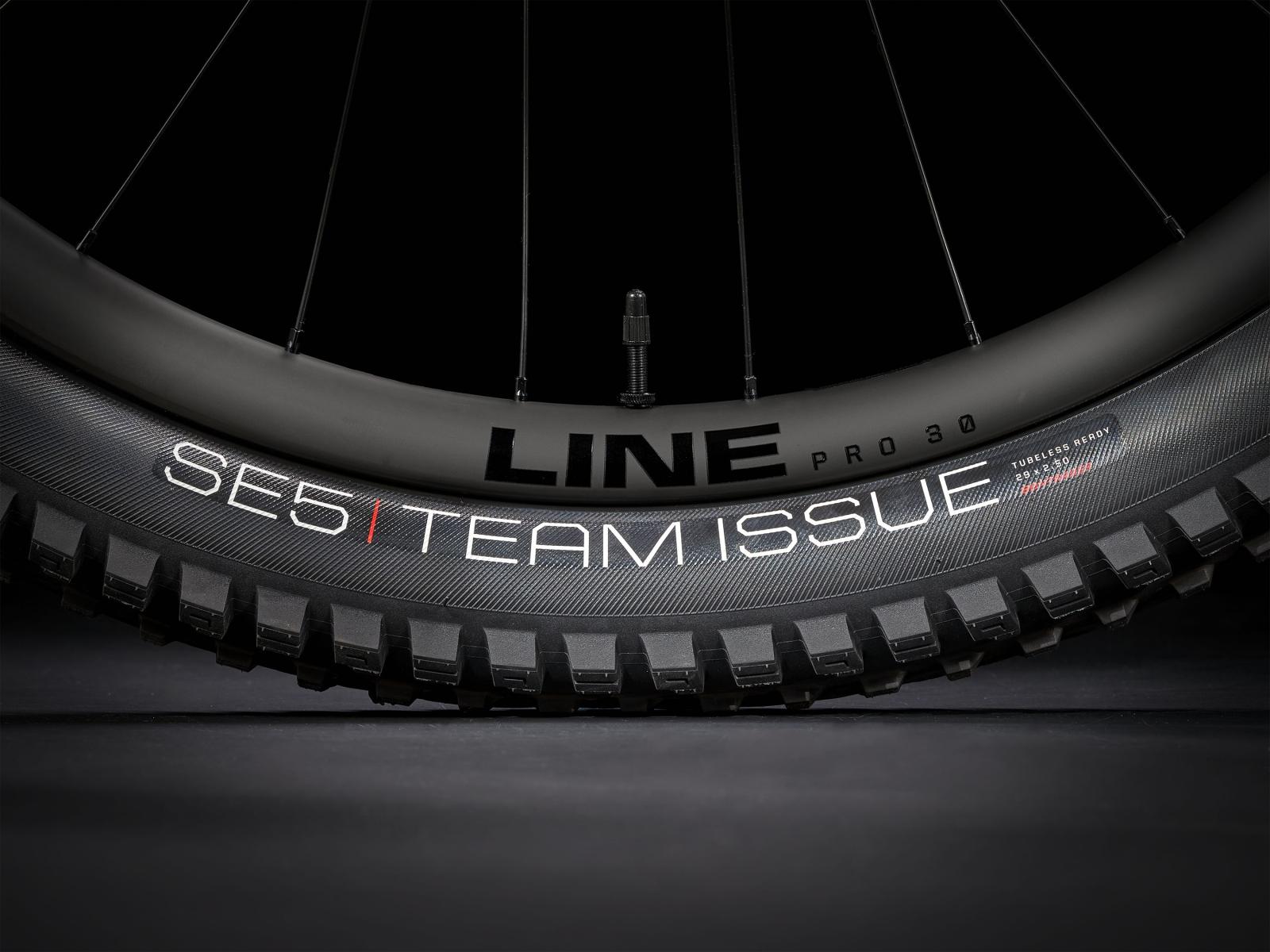 Räder: Bontrager Line Pro 30, OCLV Mountain Carbon, Tubeless Ready, 6-Loch-Scheibenaufnahme, Boost110, 15 mm Steckachse, 29"