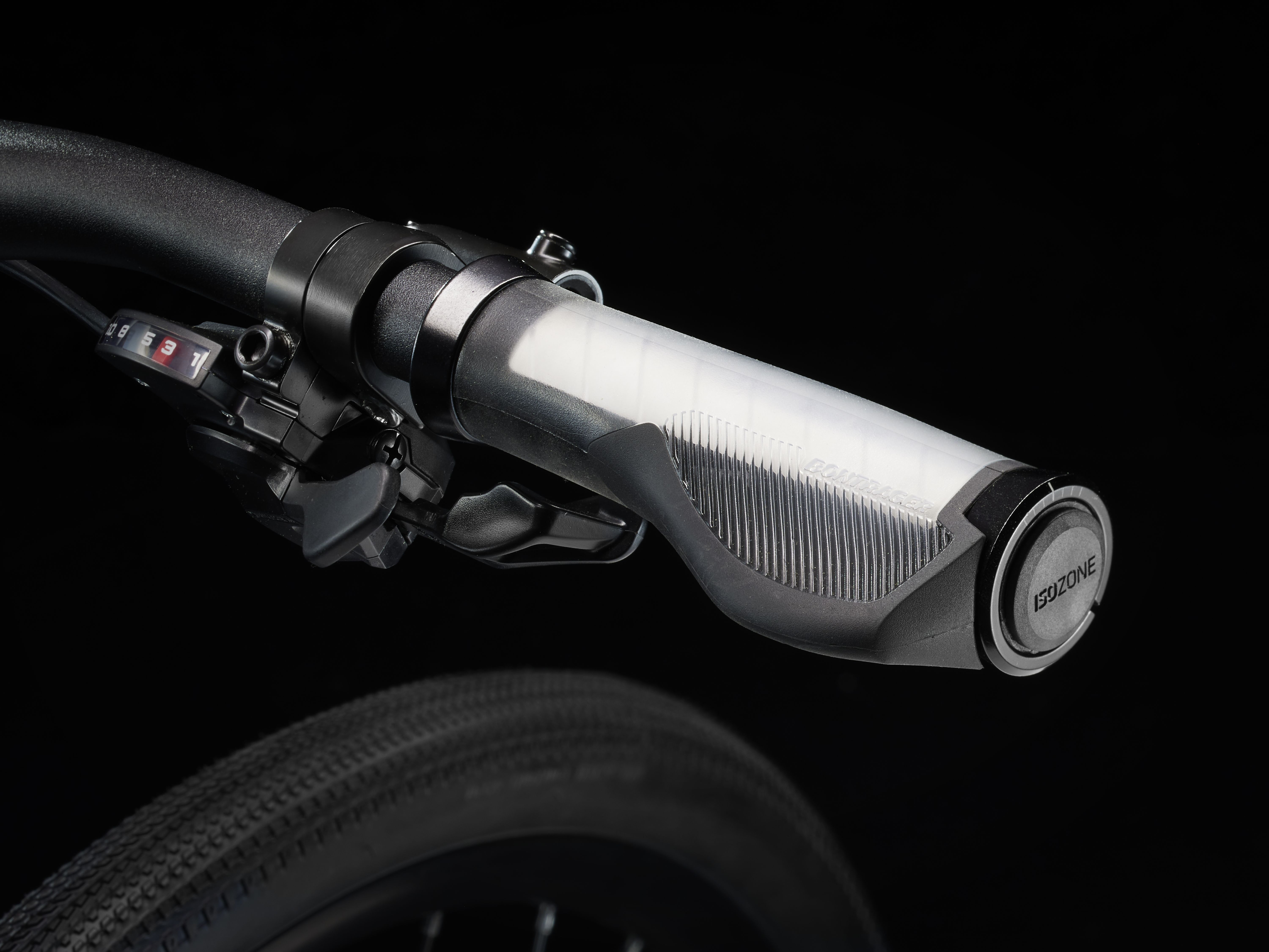Einen leichtem Rahmen samt Gabel aus 400 Series OCLV Carbon, einen Shimano CUES 10fach-Antrieb mit breitem Übersetzungsbereich, hydraulische Shimano-Scheibenbremsen für eine zuverlässige Allwetterbremsleistung, leichte Tubeless-Ready-Laufräder samt breiten, schnell rollenden Bontrager GR1 Expert Gravelreifen und einen vibrationsdämpfenden Lenker samt ergonomischen Griffen.