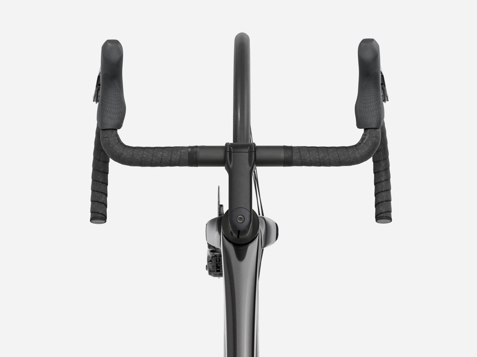 Der im Vergleich zum Unterlenker schmalere Oberlenker des Madone Gen 8 ermöglicht eine auf Aerodynamik oder Power optimierte Positionierung auf dem Bike. Und dank zweiteiligem Lenker/Vorbau-Design lässt sich die Passform schnell und einfach anpassen.