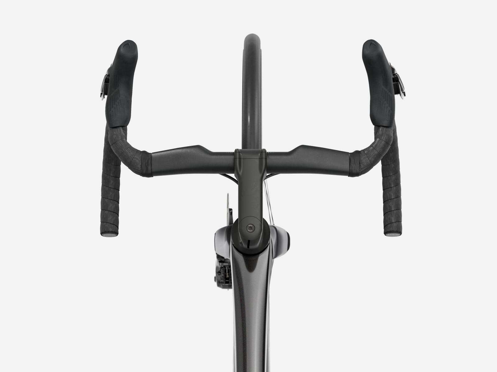 Der im Vergleich zum Unterlenker schmalere Oberlenker des Madone Gen 8 ermöglicht eine auf Aerodynamik oder Power optimierte Positionierung auf dem Bike. Und dank zweiteiligem Lenker/Vorbau-Design lässt sich die Passform schnell und einfach anpassen.