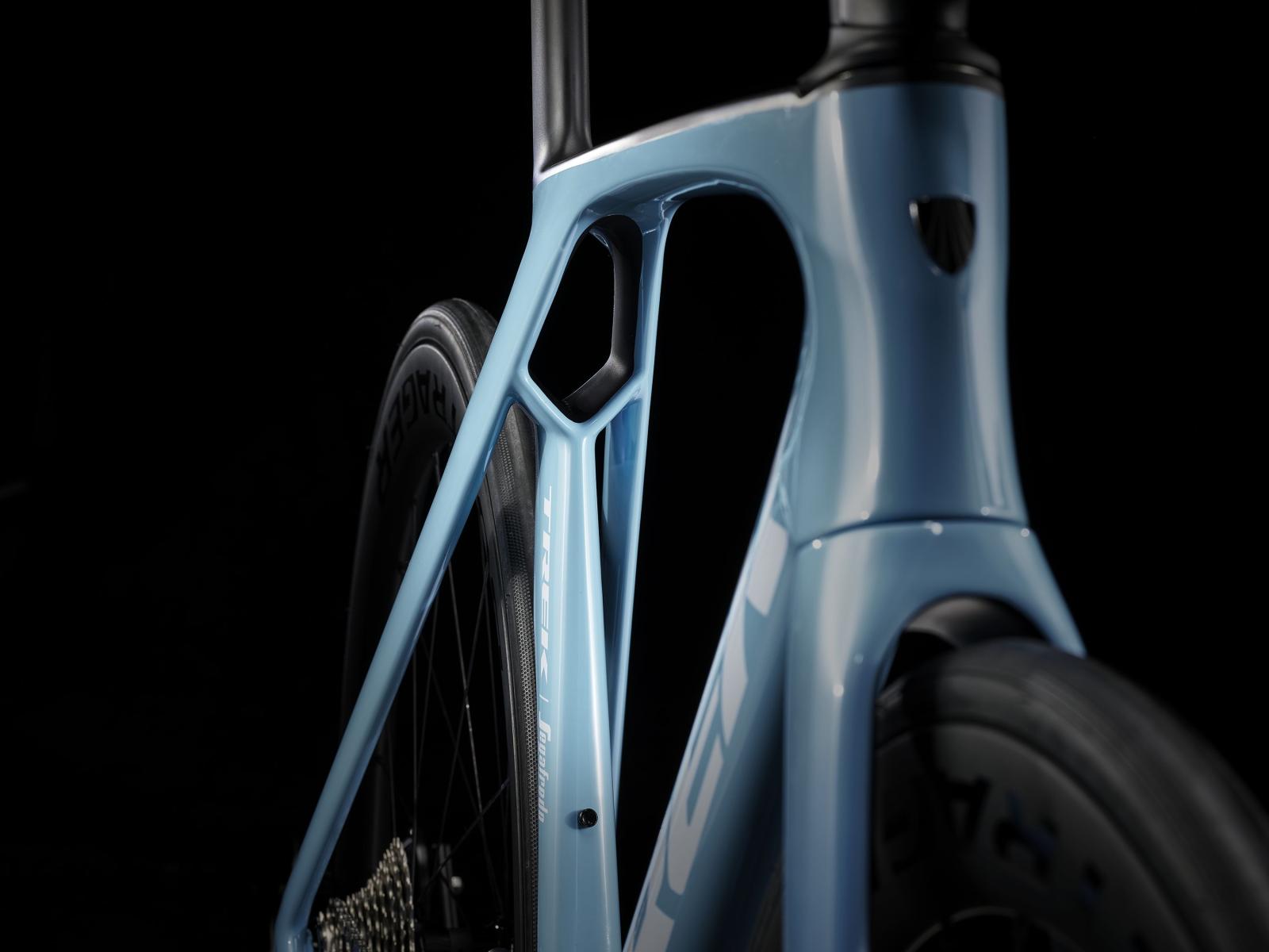 Die bislang einzigartige IsoFlow-Technologie wurde speziell für das Madone SLR der 7. Generation entwickelt. Sie spart Gewicht, verbessert die Aerodynamik und sorgt für mehr Fahrkomfort.