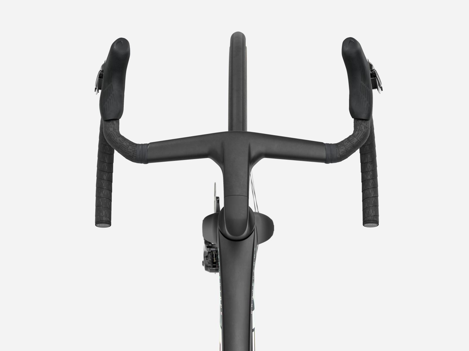 Die neue einteilige Lenker/Vorbau-Einheit ist leichter, aerodynamischer und ergonomischer als die Vorgängerversion. Darüber hinaus ermöglicht der im Vergleich zum Unterlenker 3 cm schmalere Oberlenker die Anpassung der Positionierung auf dem Bike, um entweder in der Oberlenkerposition von einer besseren Aerodynamik zu profitieren oder im Unterlenker mehr Kraft aufs Pedal zu bringen.