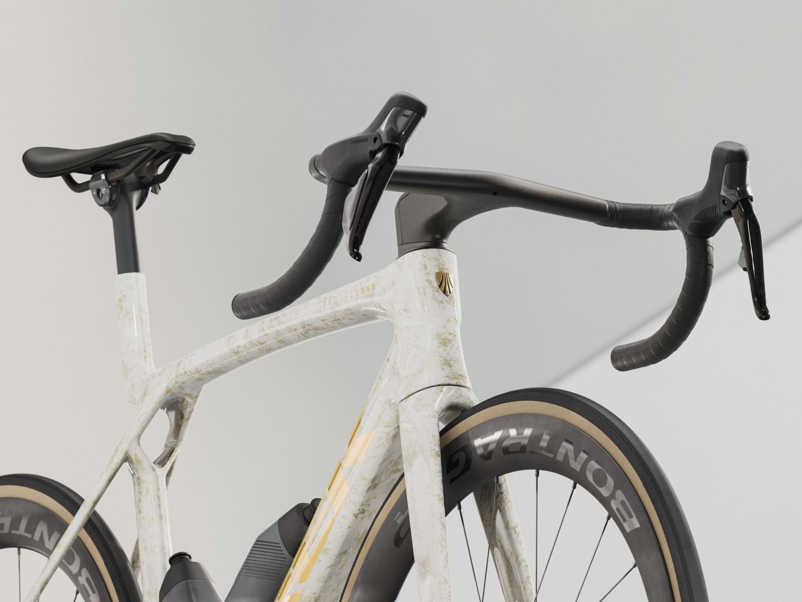 Die neue einteilige Lenker/Vorbau-Einheit ist leichter, aerodynamischer und ergonomischer als die Vorgängerversion. Darüber hinaus ermöglicht der im Vergleich zum Unterlenker 3 cm schmalere Oberlenker die Anpassung der Positionierung auf dem Bike, um entweder in der Oberlenkerposition von einer besseren Aerodynamik zu profitieren oder im Unterlenker mehr Kraft aufs Pedal zu bringen.