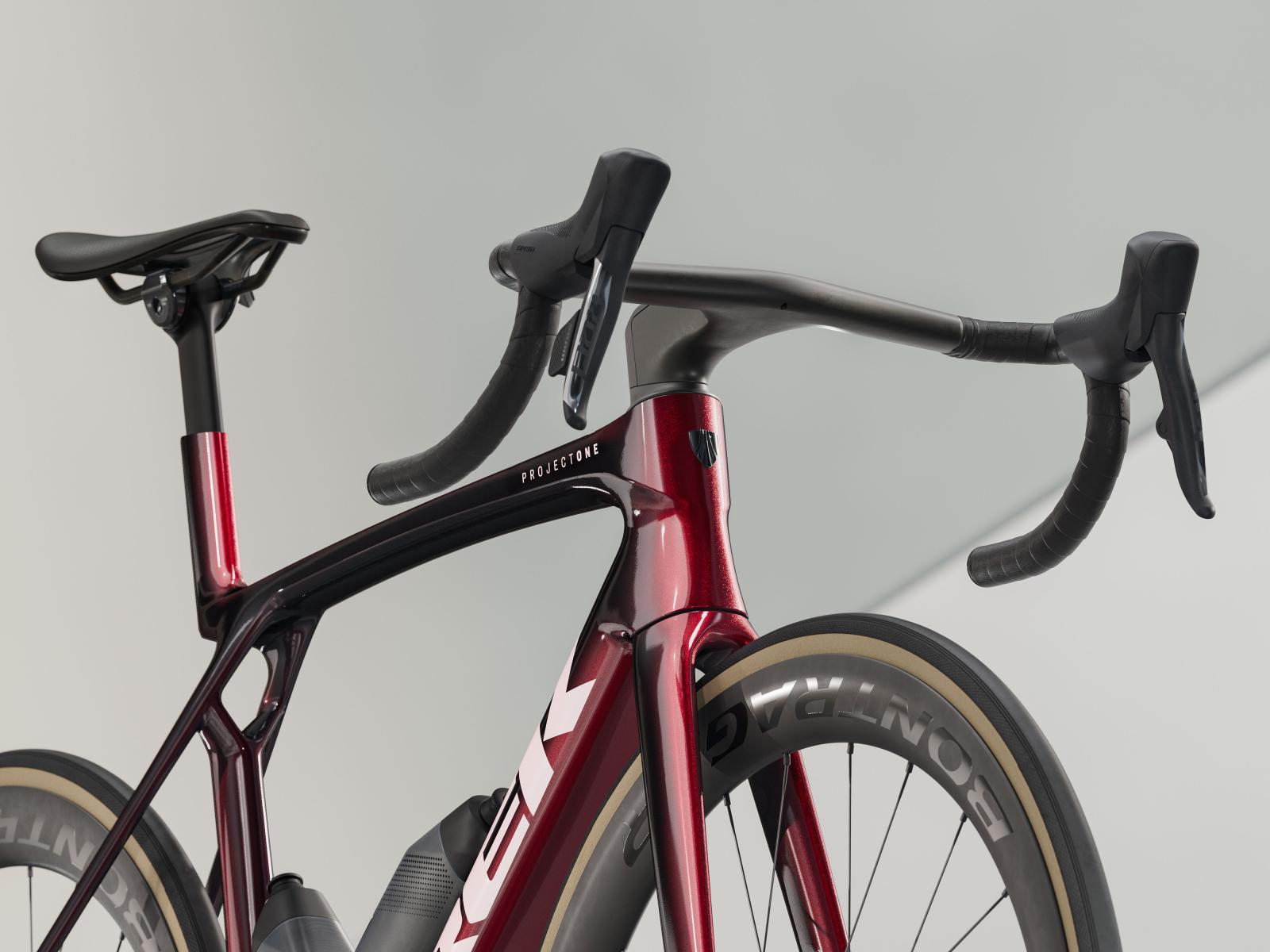 Die neue einteilige Lenker/Vorbau-Einheit ist leichter, aerodynamischer und ergonomischer als die Vorgängerversion. Darüber hinaus ermöglicht der im Vergleich zum Unterlenker 3 cm schmalere Oberlenker die Anpassung der Positionierung auf dem Bike, um entweder in der Oberlenkerposition von einer besseren Aerodynamik zu profitieren oder im Unterlenker mehr Kraft aufs Pedal zu bringen.