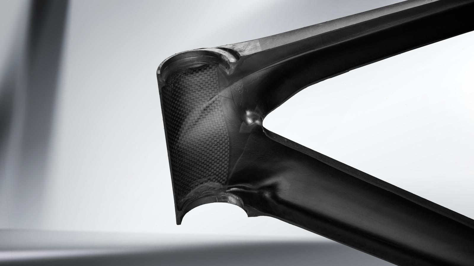 Damit du länger kraftvoller in die Pedale treten kannst, ist unsere überarbeitete rennfokussierte Komforttechnologie jetzt leichter und vertikal noch nachgiebiger.