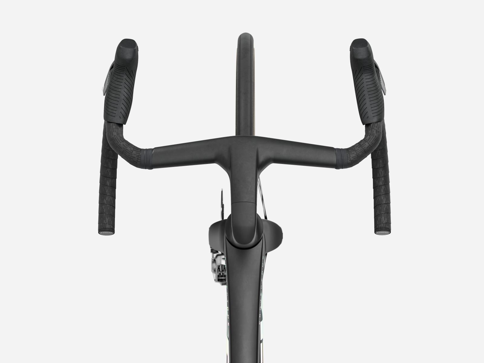 Die neue einteilige Lenker/Vorbau-Einheit ist leichter, aerodynamischer und ergonomischer als die Vorgängerversion. Darüber hinaus ermöglicht der im Vergleich zum Unterlenker 3 cm schmalere Oberlenker die Anpassung der Positionierung auf dem Bike, um entweder in der Oberlenkerposition von einer besseren Aerodynamik zu profitieren oder im Unterlenker mehr Kraft aufs Pedal zu bringen.