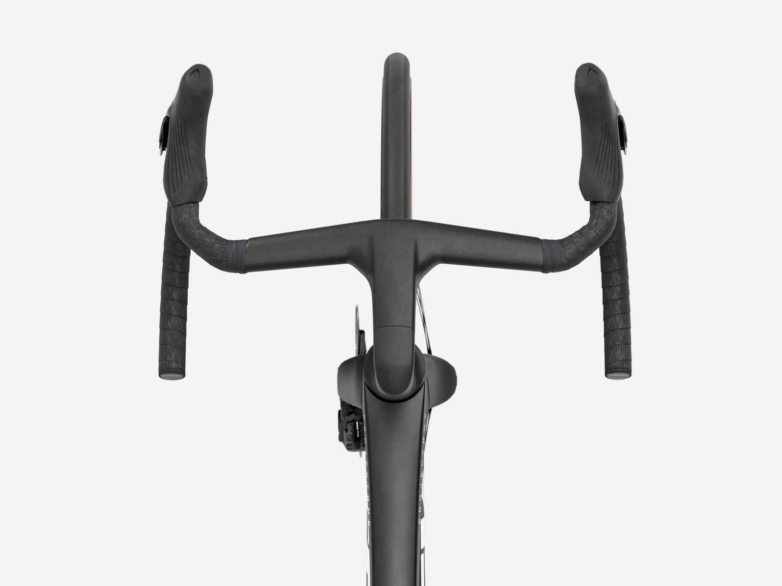 Die neue einteilige Lenker/Vorbau-Einheit ist leichter, aerodynamischer und ergonomischer als die Vorgängerversion. Darüber hinaus ermöglicht der im Vergleich zum Unterlenker 3 cm schmalere Oberlenker die Anpassung der Positionierung auf dem Bike, um entweder in der Oberlenkerposition von einer besseren Aerodynamik zu profitieren oder im Unterlenker mehr Kraft aufs Pedal zu bringen.