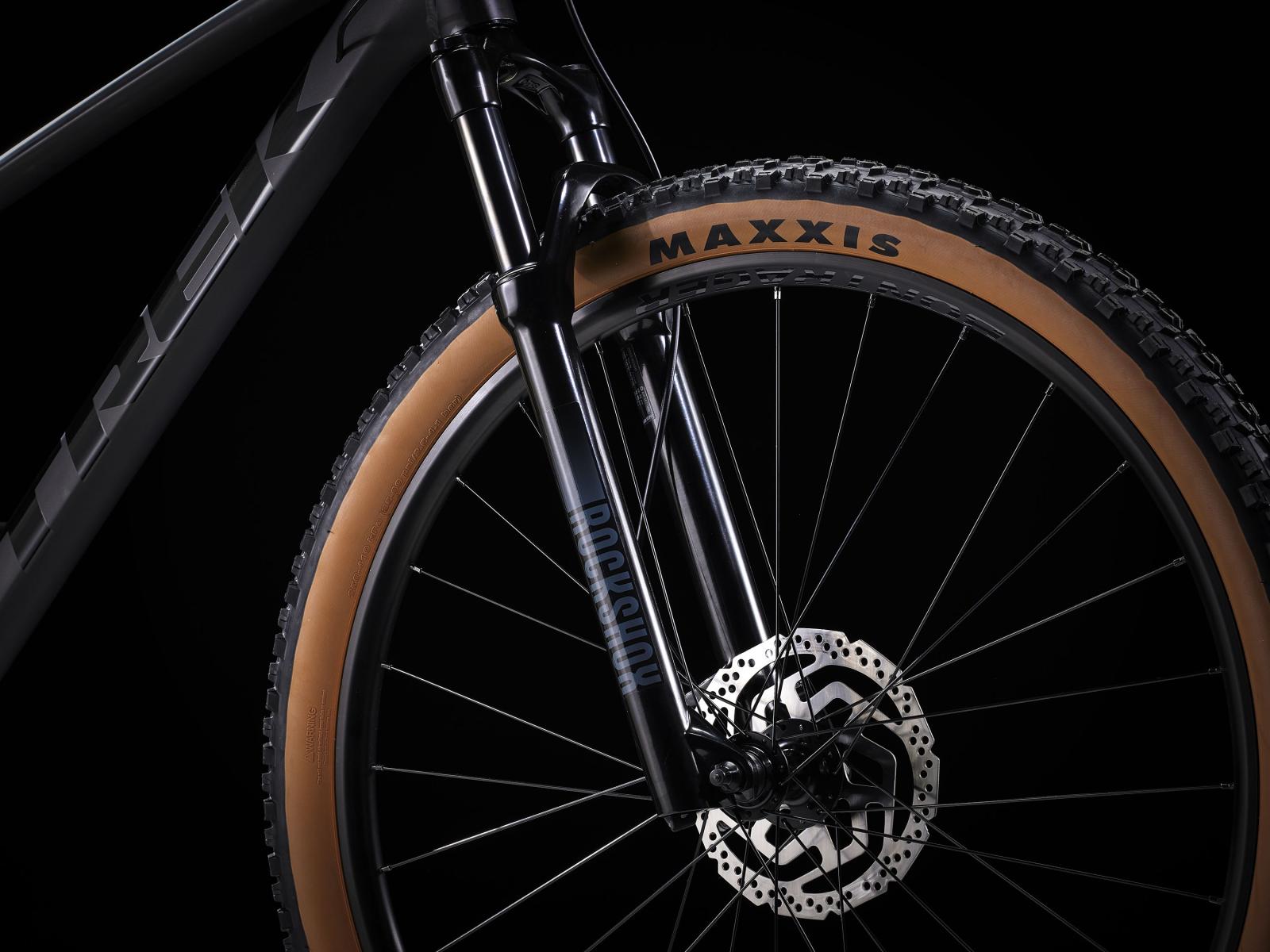- Die hochwertige RockShox Federgabel verfügt über eine Luftfederung, die besser einstellbar und leichter ist als eine Stahlfeder.