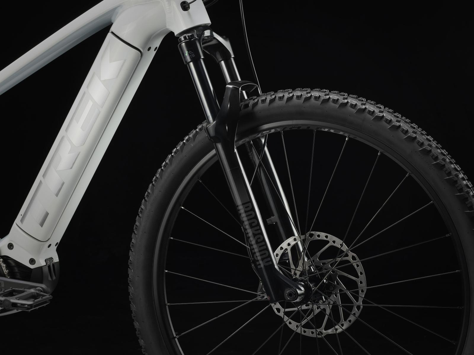 Einen leichten und robusten Aluminiumrahmen mit ausdauerndem 625-Wh-Akku, der für eine saubere Optik und optimalen Schutz auf dem Trail komplett integriert ist, einen Bosch Performance CX Motor zur Antriebsunterstützung bis 25 km/h und eine ergonomische Smart System LED Remote von Bosch samt drahtlosem Intuvia-Display Controller. Außerdem bekommst du eine RockShox Recon Silver RL-Federgabel, einen Shimano XT 1x12-Antrieb und Bontragers Kovee 23 Tubeless Ready-Laufräder.