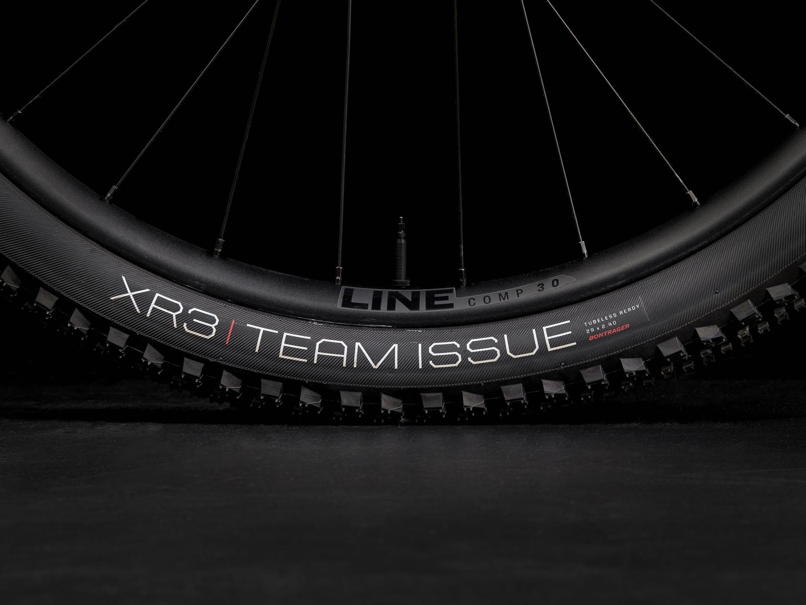 Reifen: Bontrager XR3 Team Issue, Tubeless Ready, Inner Strength Flankenschutz, Aramidwulstkern, 120 TPI, 29 x 2.40