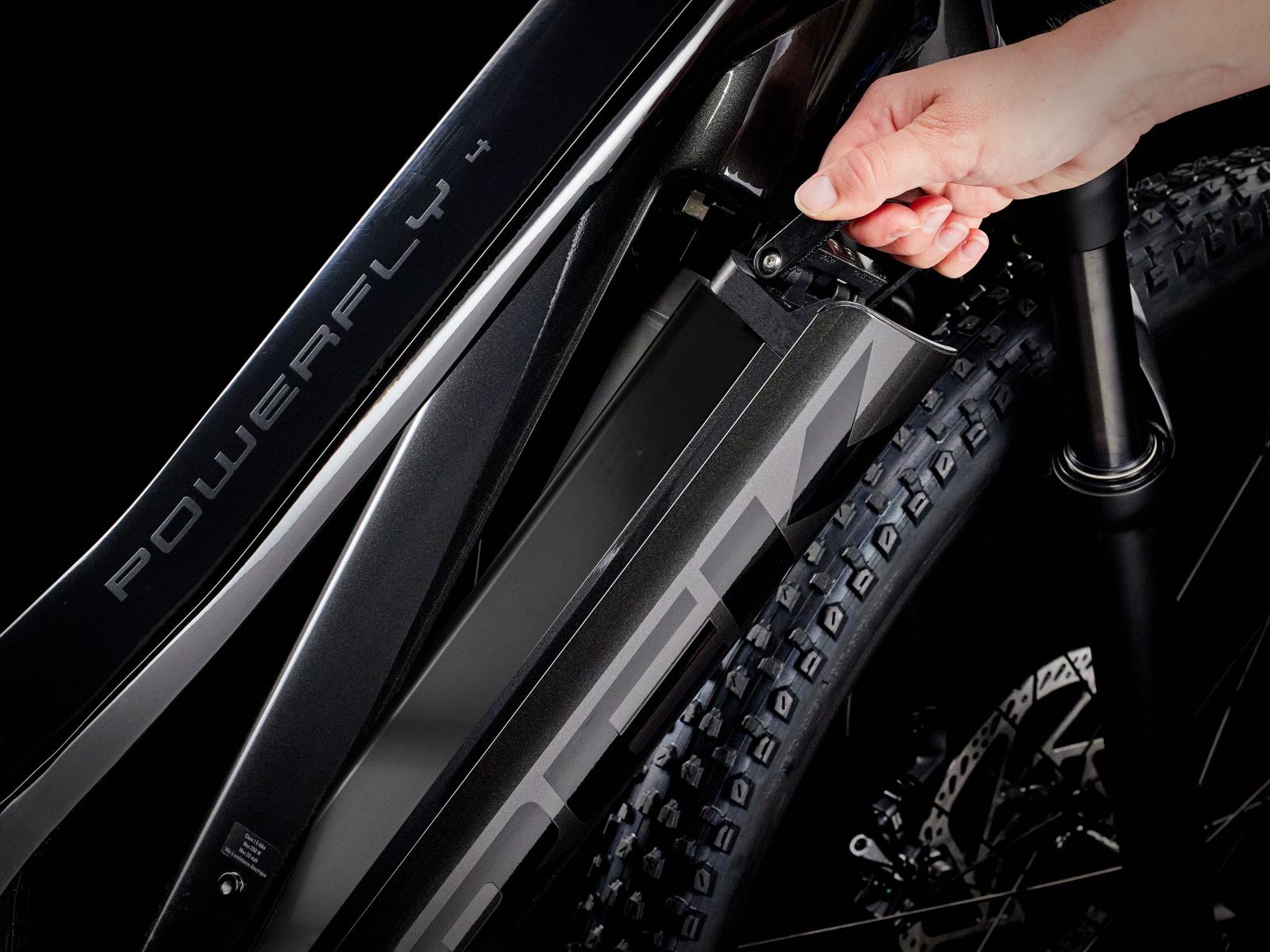 RIB (herausnehmbarer integrierter Akku) ist eine einteilige Kombination aus Akku und Abdeckung mit eingebautem Griff, die kinderleicht und ohne Werkzeug aus dem Rahmen ausgebaut und wieder eingesetzt werden kann. Dank diesem Feature ist es super bequem, den Akku zum Transport, zur Sicherung oder zum leichteren Aufladen aus dem Bike zu entnehmen.